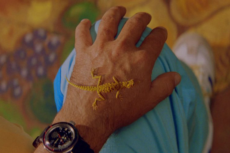 映画の終盤では、ズィスーが元妻のエレノア(アンジェリカ・ヒューストン)とネッドについて話し合い、ネッドが実際に自分の息子であることを理解するという極めて感情的なシーンがある。彼はまるでセラピストのようにエレノアに気持ちを伝え、ふと自分の手を見ると、そこにはネオンイエローのトカゲが止まっていた。カメラがトカゲを上から見下ろしているとき、ピントは合っていないが、ダイヤルにヘルメットのモチーフがプリントされたボストークが見える [01:16:03]。しばらくして彼は蚊のようにトカゲをはじく。その瞬間はともかく、少なくとも我々はこの時計を見ることができた。