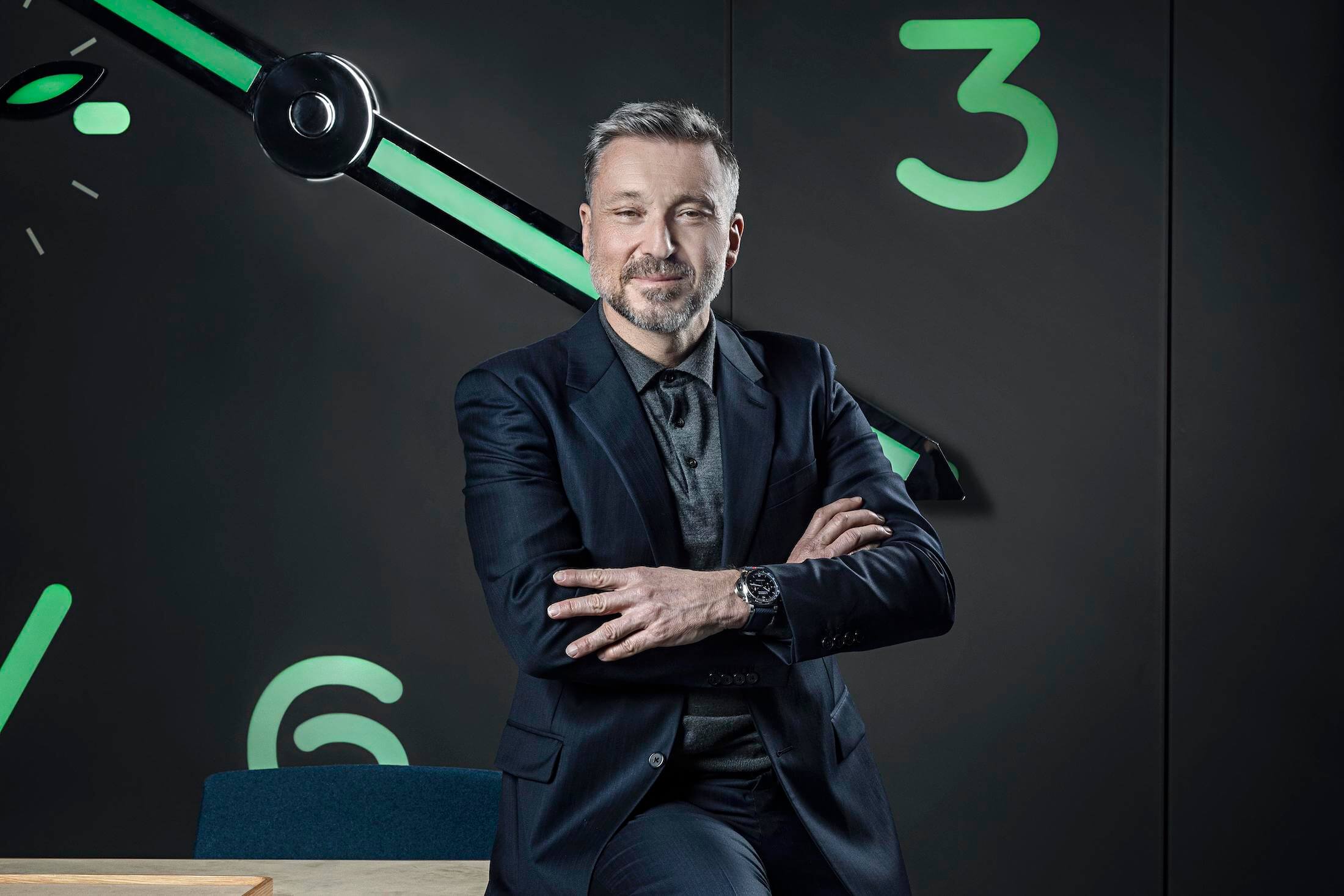 「サブマーシブルはパネライにおいては比較的新しいシリーズです。とてもマスキュリンでダイバーのための時計という意味では、ブランドのハートのようなもの。そのサブマーシブルは、これまで42と47mmの展開しかなく、我々にとってのベストサイズである44mmを今回拡充できたことは大きな意味があります。44mmのサイズと厚みのバランスは非常によく、装着感が高い。eSteelの採用は昨年だけの話題ではなく、2022年においても引き続きホットトピックであると示したかったためこのサブマーシブルでの発表となりました。