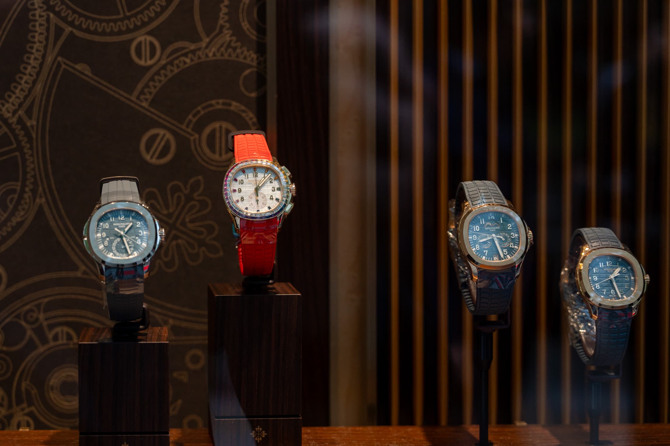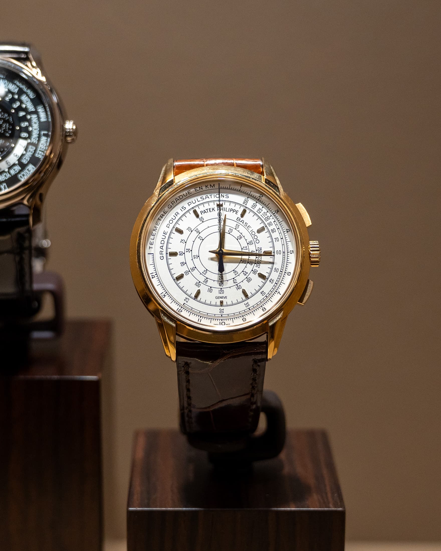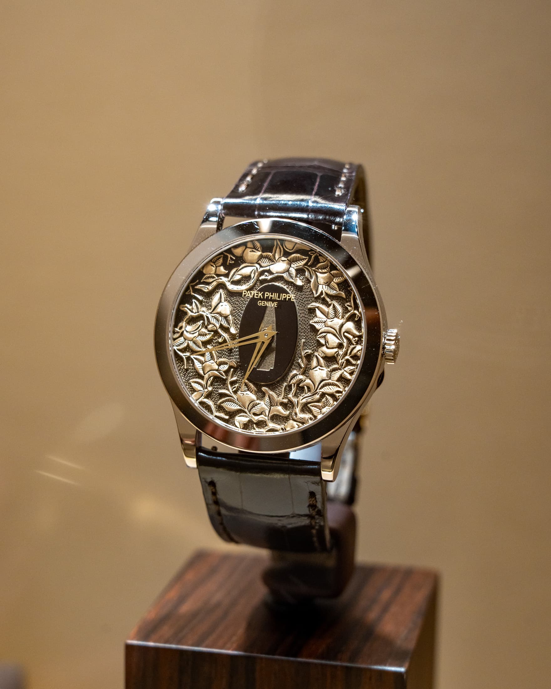 店内には今回のオープニングに合わせて、2024年新作モデルをはじめ、パテック フィリップの創業175周年を記念したモデルを含む約40本の貴重な時計が展示されていました。展示品のなかには、同店で購入されたお客様からお借りしているものも一部含まれており、普段めったにお目にかかることのないものもありました。
