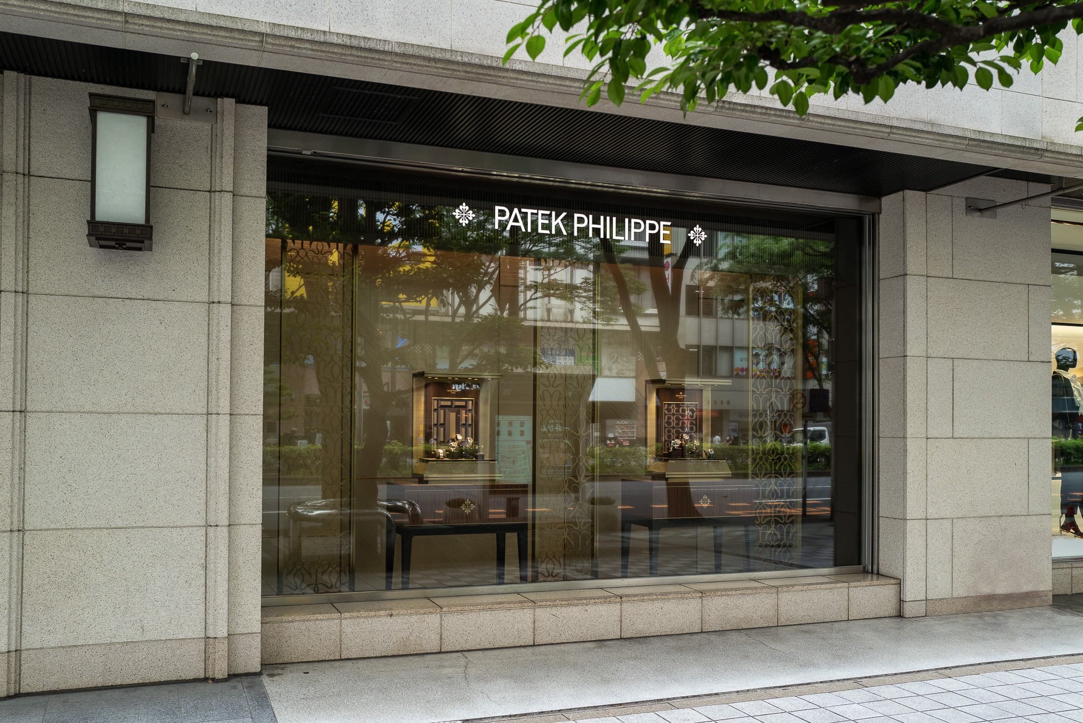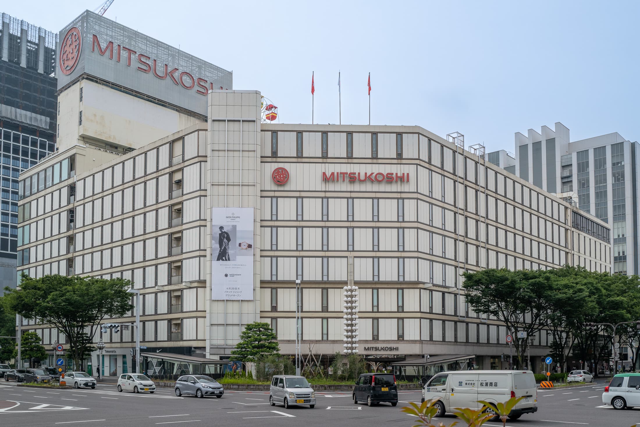 名古屋栄三越の横断幕には、オープンに合わせてパテック フィリップのアイコニックな広告ビジュアルが掲載されている。
