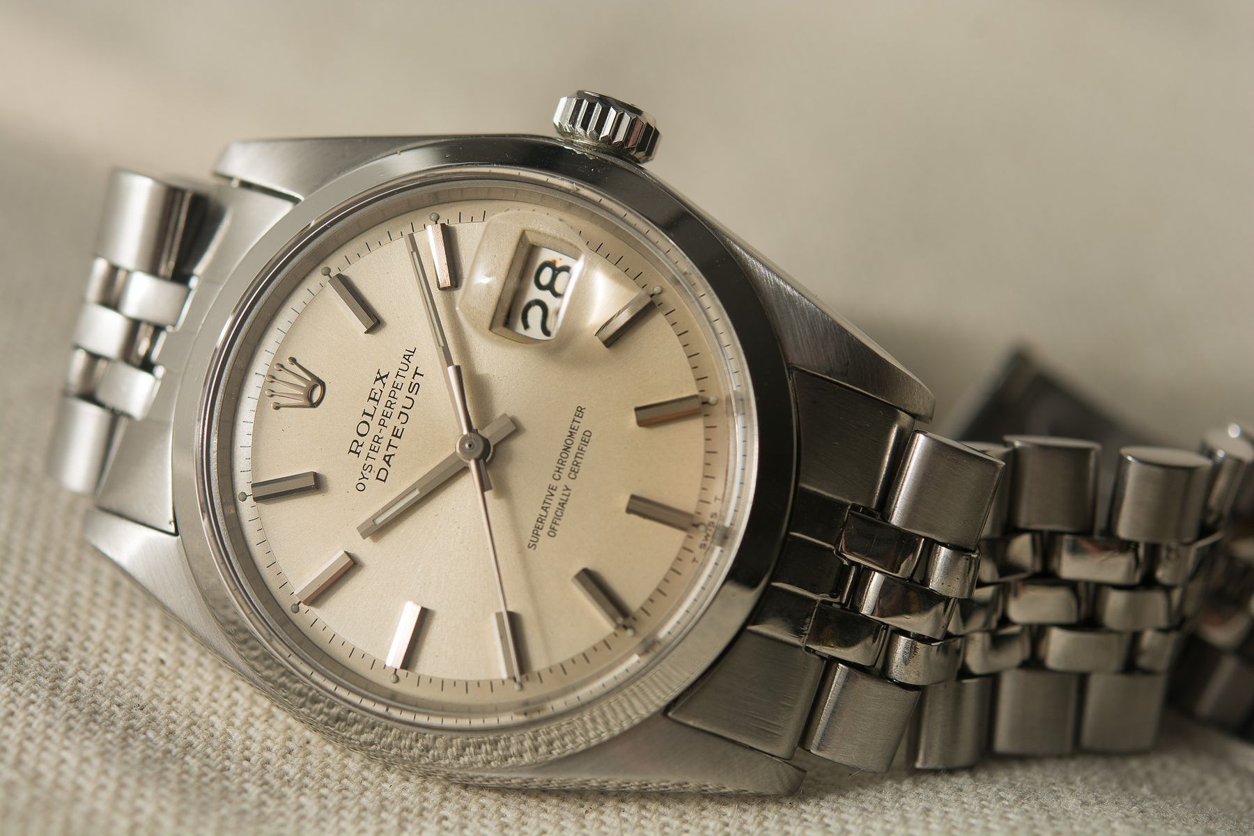 『ハスラー 2』でニューマンが着用しているものと同型のロレックス デイトジャスト16200。Photo, Phillips