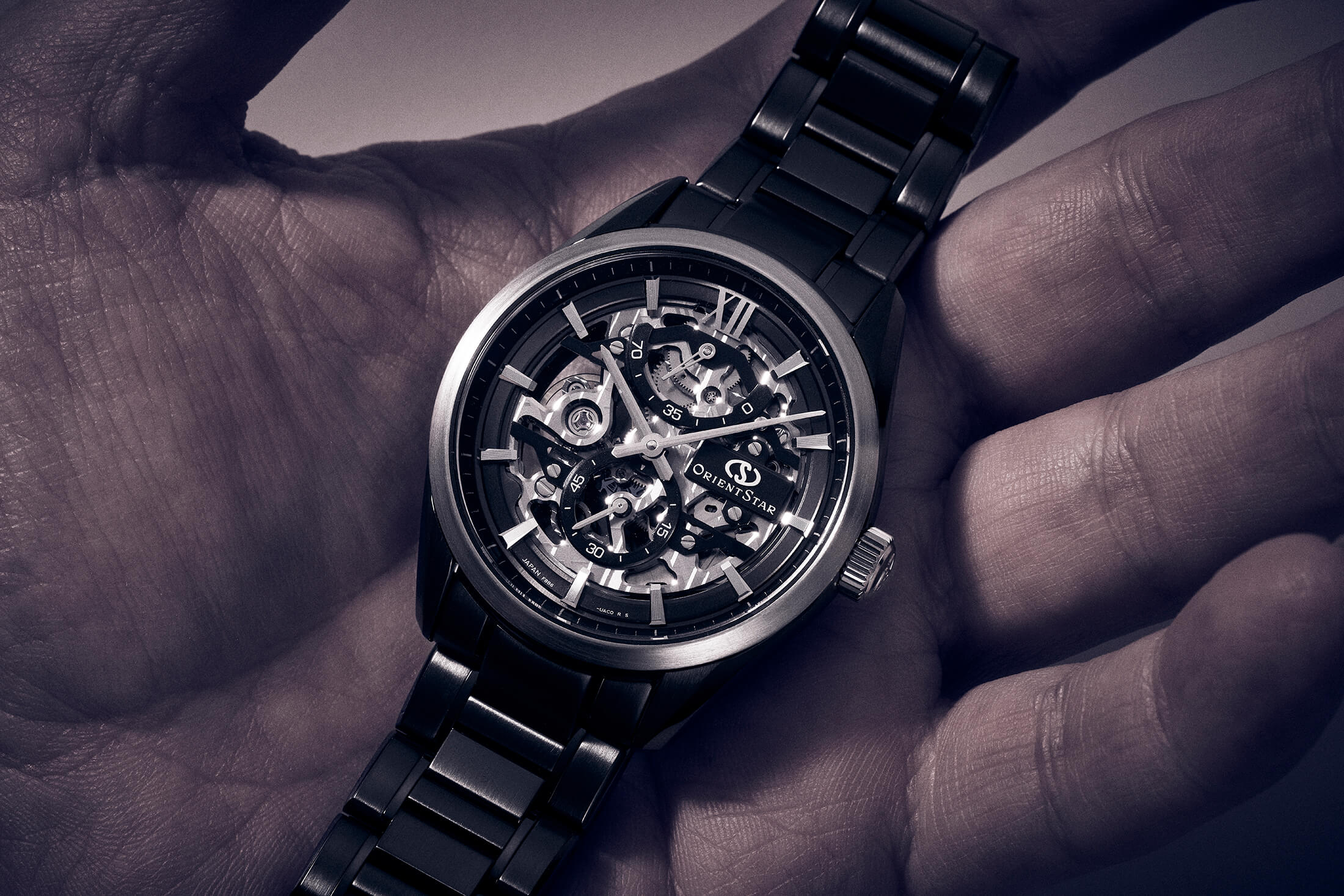オリエントスターが今日、時間の流れの原点といえる天文現象、つまり宇宙にインスパイアされて、星雲や星団をデザインの通奏低音とするMコレクションズを展開しているのは周知のとおり。75周年を記念するモデルとしてまず注目しておきたいのが、コンテンポラリーコレクション M34から3月5日に発売となる、M34 F8 スケルトン ハンドワインディングだ。