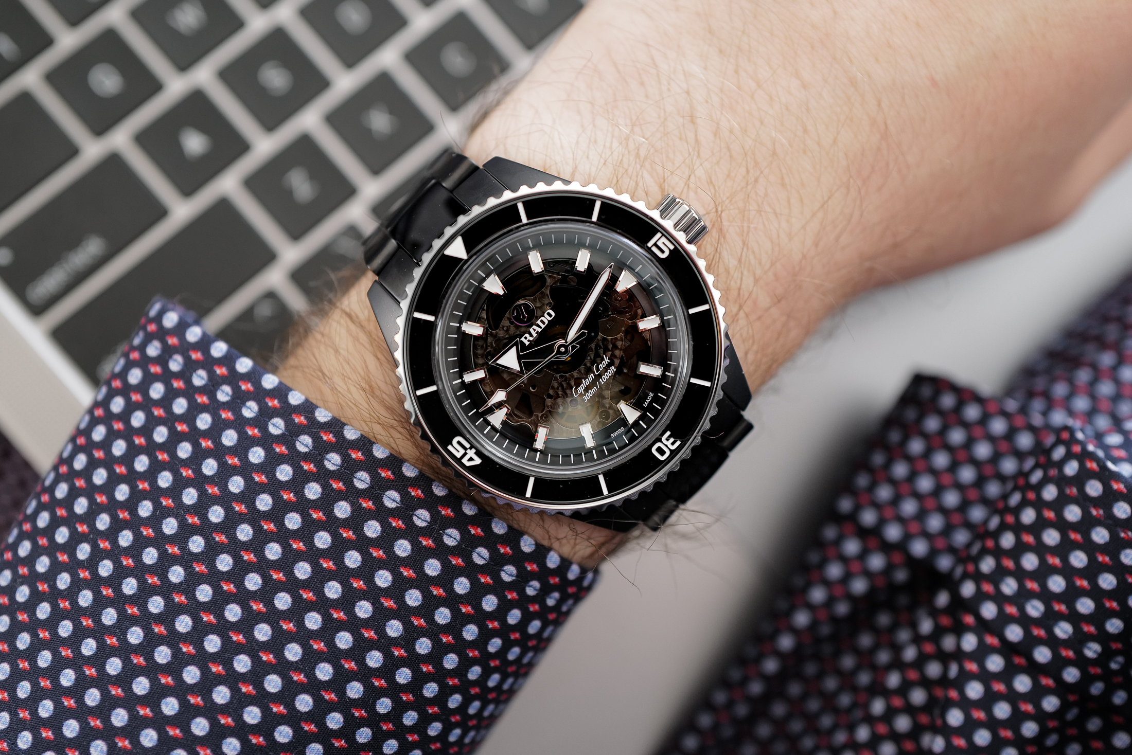 かつて、セラミック製のラドーは、長方形のケースとレトロな雰囲気のセラミックブレスレットで、ひろ目でそれと分かるものだった。しかし、今は違う。今回の新作は、ブランドを代表する2つの要素とコレクションを効果的に融合させたものである。「セラミック」と「キャプテンクック」彼自身だ。