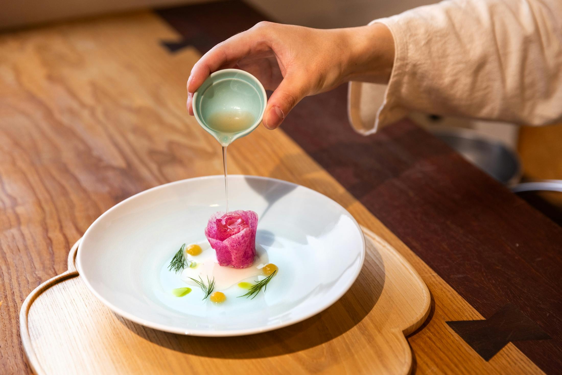 本国では、ファクトリーの現場やミュージアムの見学、オフロード体験といった独自のツアーを開催し、ブランドの世界観や哲学を伝えているが、日本ではそれはできない。そこで発案されたのが唯一無二の旅という、世界でも類のない試みだ。レンジローバーで巡る旅では、文化的体験始め、選りすぐりのグルメや宿泊によって日本の伝統とモダンを掘り下げるとともに、サステナビリティにも目を配る。