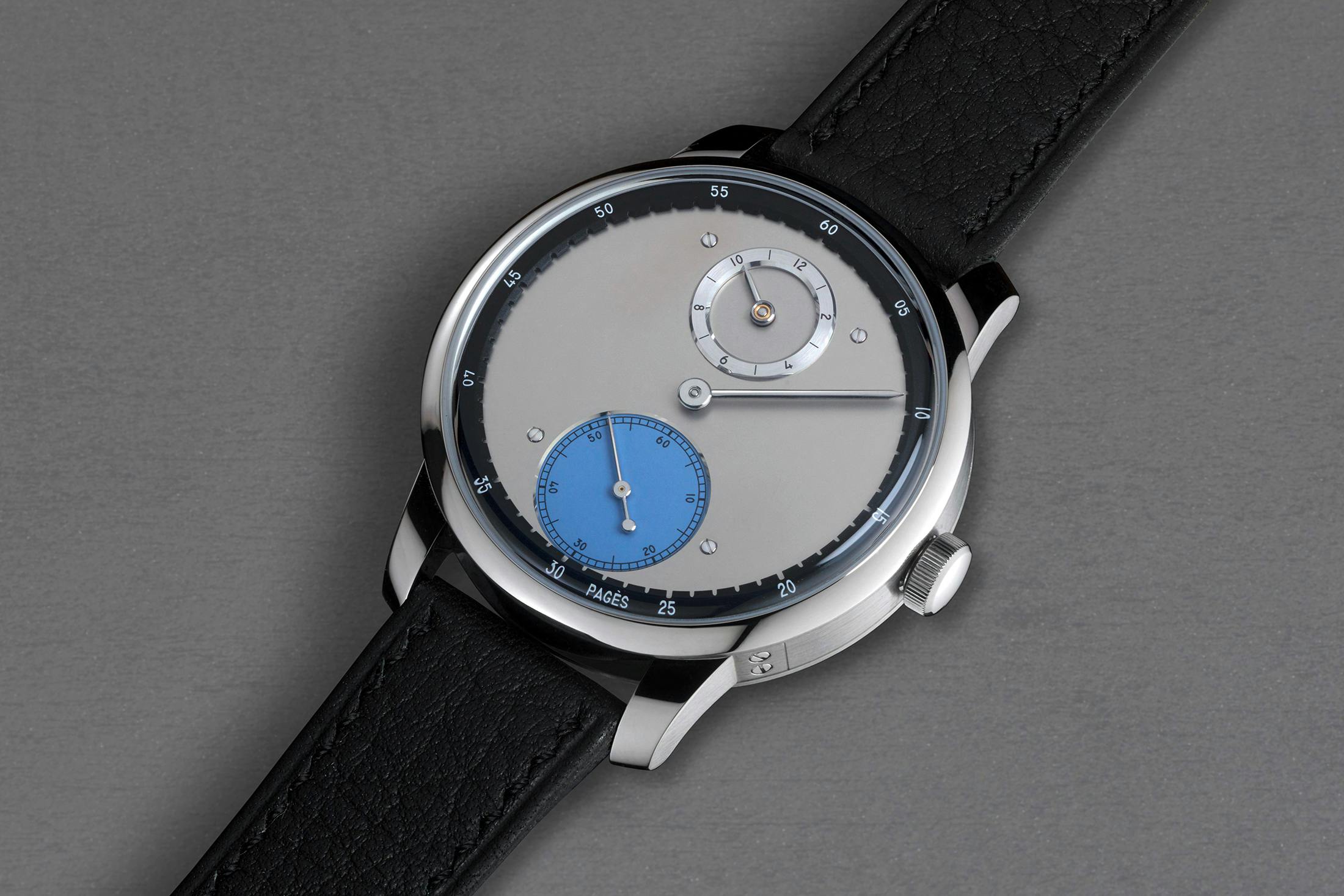ベルナルド・レデラーを独立時計師の大ベテランとするならば、ラウル・パジェス(Raúl Pagès)氏は独立時計師期待のホープと言えよう。1983年にスイス・ヌーシャテル州で生まれた彼は、同国を拠点とする独立時計師のひとりで、パルミジャーニ・フルリエやパテック フィリップの修復部門に在籍後、2012年に独立。2017年にアカデミー会員となった。レデラー氏とは親子ほどの歳の差があるが、彼もまた修復家としてのキャリアを背景にした時計づくりが特徴で、特に古典的クロノメーターの思想を現代の腕時計に再解釈する作風で知られる。代表作にレギュレーター・ア・デタント RP1があるが、この時計をもって彼は第1回 ルイ・ヴィトン ウォッチ プライズの最優秀賞を受賞し、一躍その名が知られるようになった。