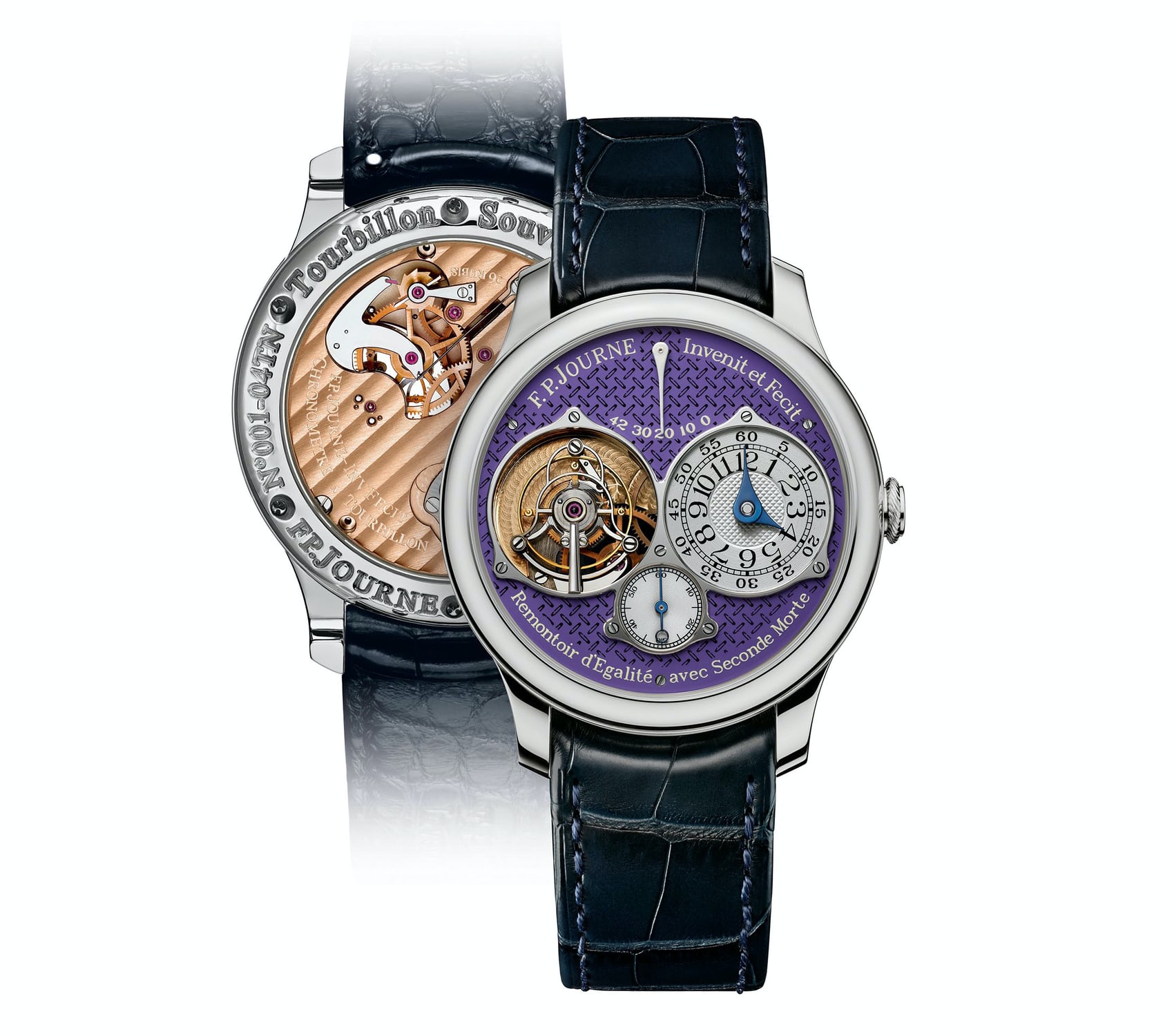 Ref.TNは現在も生産されているが、F.P.ジュルヌは現在新しい派生モデルに取り組んでいるそうだ。まとめると、ケースは主にプラチナ製(ただしローズゴールド製も用意される)、ムーブメントはローズゴールド製、ダイヤルは標準のゴールド以外にも豊富なバリエーションがあり、Ref.TNのケースサイズは直径40mmだ。