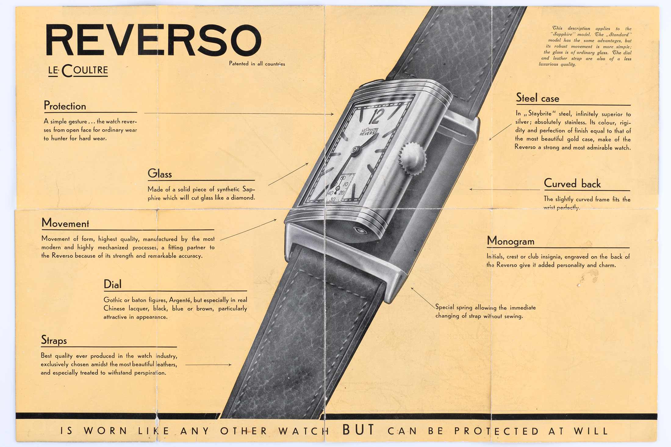 第二世代のレベルソの広告。ケースのゴドロン装飾が2本であることが確認できる。Courtesy Jaeger-LeCoultre