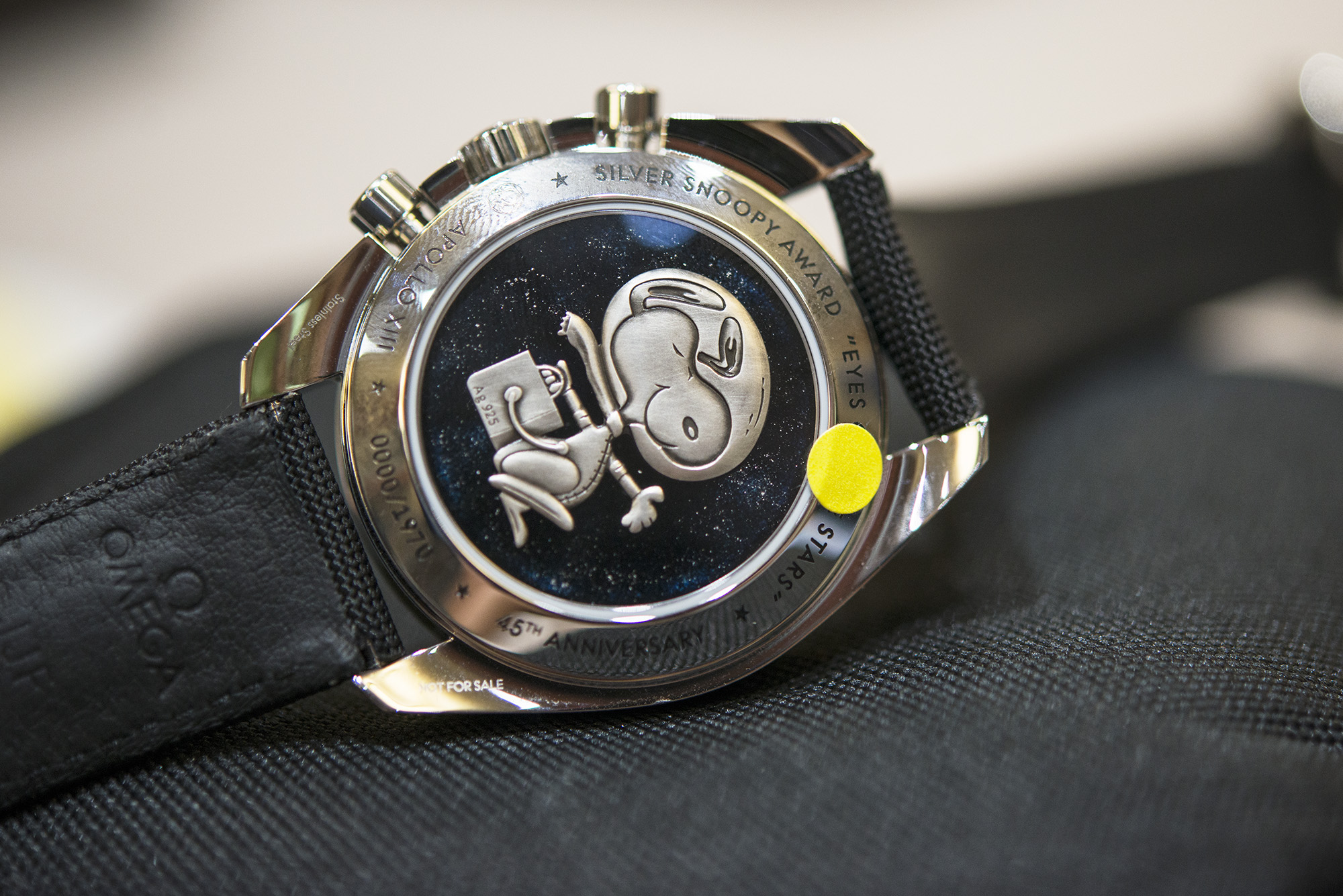 – – Jim Lovell– – ジム・ラヴェルこの最後の制御燃焼がなければ、月着陸船は地球の大気圏外に飛び出し、乗組員と共に宇宙を漂い続けていたかもしれなかった。飛行士たちが帰還する際に果たした役割が評価され、スピードマスターはシルバー スヌーピー アワードを受賞した。この賞は、有人飛行の安全やミッションの成功に関して優れた功績を上げたNASAの職員や契約業者に対して与えられるものである。オメガはこの賞を記念し、特別版の腕時計を2回だけ製作した。2番めのモデルは2015年初頭、バーゼルで初めて公開された。