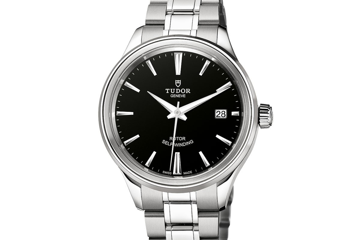 まずはグループ企業であるチューダーの新モデル「スタイル」です。サイズは4種類(28/34/38/41mm)、ダイヤルカラーは多様で素材は総ステンレスとツートンカラー、ブレスレットとストラップの2種類があります。ここでは、38mmサイズのSS製ブレスレットの組み合わせが最適でしょう。デイトジャストよりも若干モダンなスタイルでありながら、非常に堅牢なケースを採用し、内部には実用的なETA2892ムーブメントを搭載しています。このモデルの価格は約23万円で、デイトジャストの約3分の1となっています。