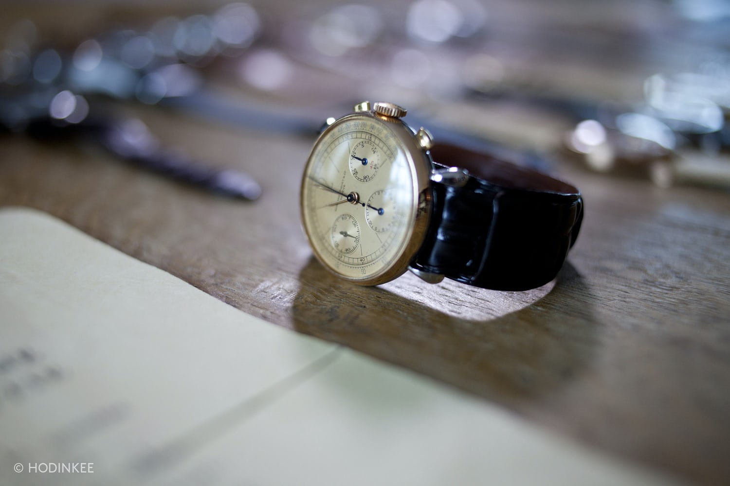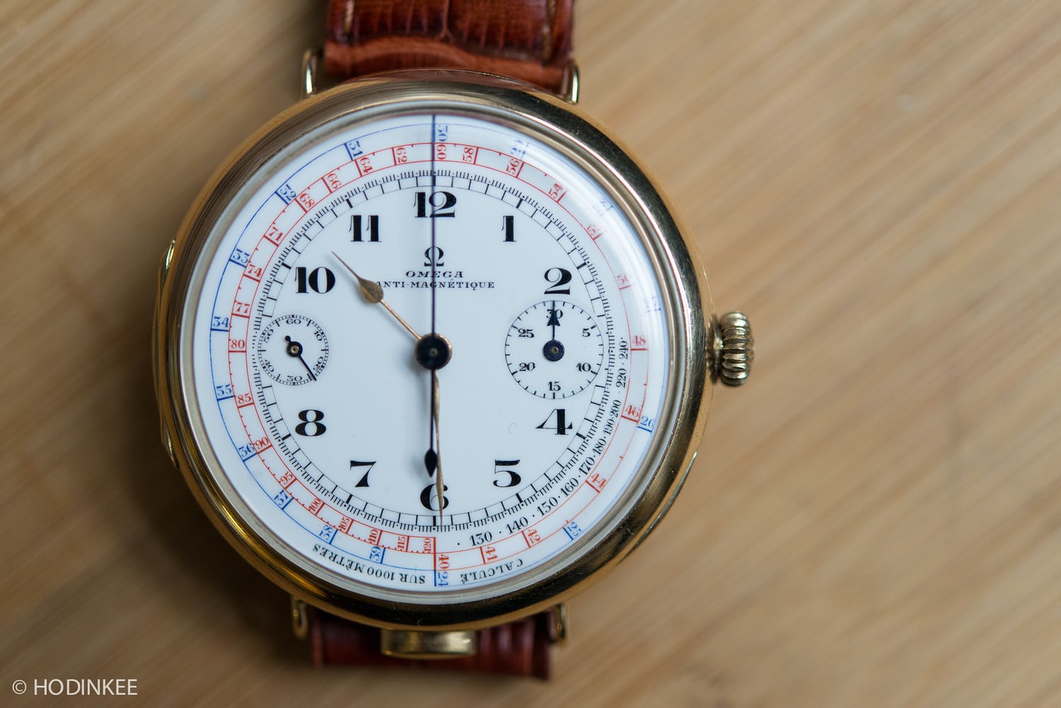 現代のオメガといえば、クロノグラフを製造する会社を思い浮かべる。初期のCal.33.3と後のスピードマスターは、それぞれの時代の最も象徴的な時計の一つである。しかし、それ以前に、オメガはこの時計を作った。この特大ケースには、2つのサブダイヤル、ゴージャスなエナメルダイヤル、そして何よりもクールなのは、6時位置のラグの間にあるモノプッシャーである。実際にこれが懐中時計から改造された初期の腕時計であることが分かり、多くの人は、このリファレンスがオメガとしての最初期の腕時計クロノグラフであると信じている。