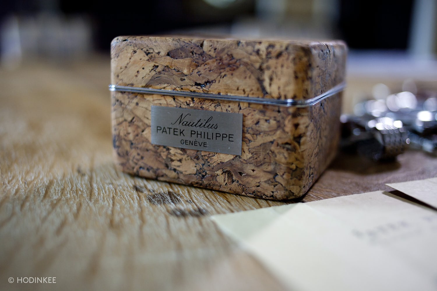 アルフレッド氏は時計愛好家であると同時に、コレクターでもあることを忘れてはならない。コレクターにとって、全ての時計が着用されるわけではない。彼はこの初期のパテック ノーチラスを見つけたとき、決して身に着けることはないにしても、それを手に入れなければならないと直感した。これは、本当に手つかずの状態の、Ref.3700元祖ノーチラスだ。ブックレットや購入証明書、素晴らしいコルクボックス(歴史上最もクールな時計用化粧箱として誰もが同意するところだ)、ケースバックのオリジナルステッカーと、全てのオリジナルドキュメントを保持している。これほど素晴らしい時計は他にはないだろう。