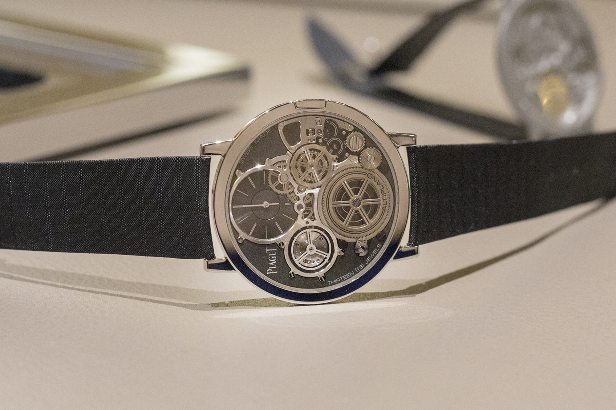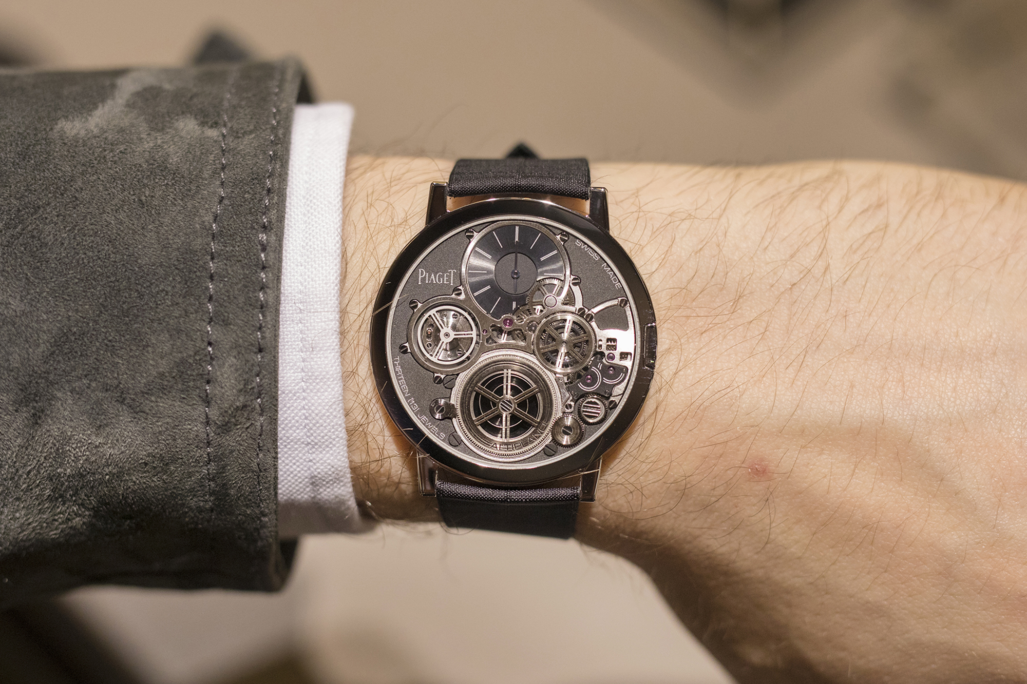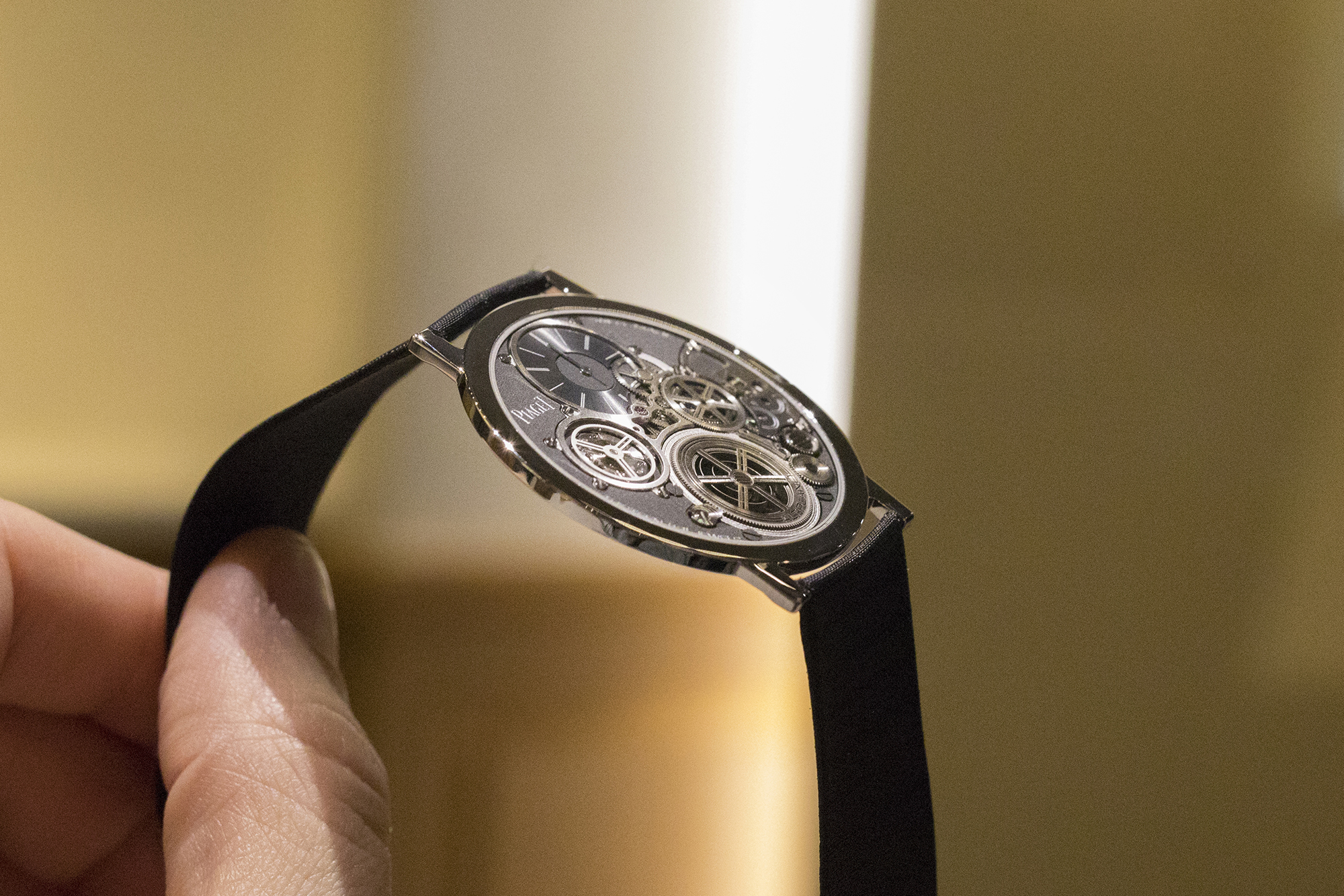 SIHH 2018で初めて公開された時、この異端の時計はガラスケースの中からほとんど出されることなく展示されており、大勢の人々が台座の上に置かれたその姿をひと目見ようと、ケース前でひしめきあっていました。その時も素晴らしい時計だと感じましたが、それから1年と少しが経過して自分の手首につけた実物を見ると、なぜこの時計がピアジェの言うようにあらゆる点で「アルティメート」なのか、ようやく本当に理解できたように思います。