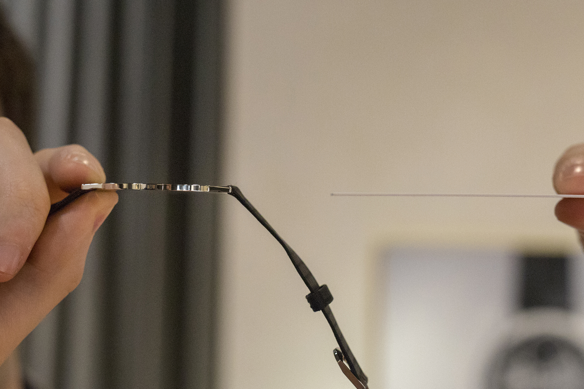 例えば、レザーだと十分な薄さを確保できないため、ベルトには特殊な合成素材を用いています。また、従来通り時分針を重ねて中央に配置するのではなく、ダイヤルにはめ込まれたディスク上に時針を表示することで、さらなる薄さを追求しているのです。また、おかしな話かもしれませんが、この時計で最も惹かれたのは手首につけた時の不思議な感触でした。ケースと一体に埋め込まれたリューズ、直線的なラグ、着けていないかのような軽さなど、通常の腕時計であろうという意識は全くしていないと大胆に宣言しているようでした。時計としての優先順位が全く異なったものなので、みなさんは魅了されるか、それとも全然興味がないかのどちらかになるのだと思います。
