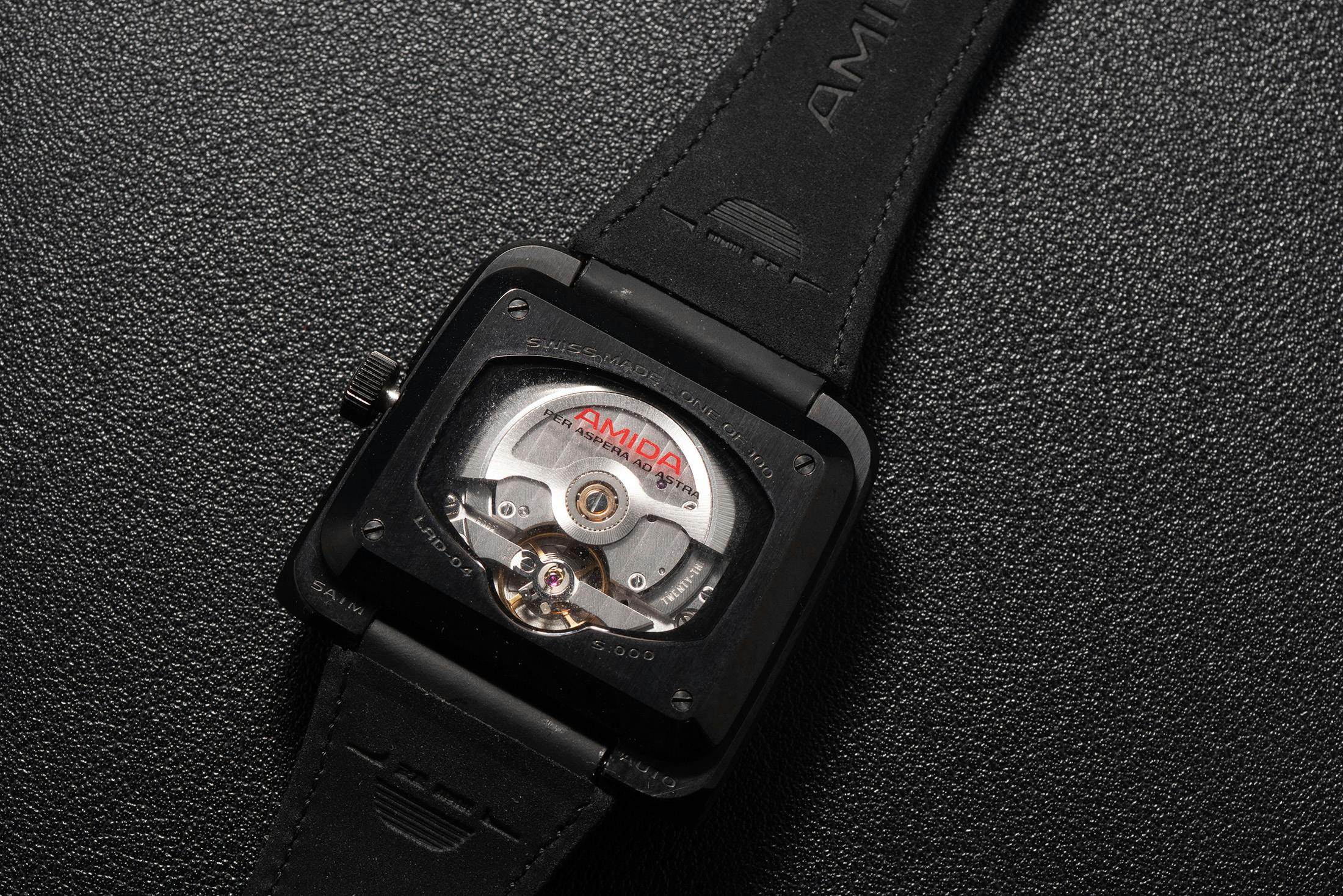 アミダはデザイン主導のブティックブランドであり、ダッシュボードのようなディスプレイとジャンピングアワー機構を特徴とするデジトレンドを、ブランドのフラッグシップかつ唯一のモデルとして掲げる。2024年の復活デビューに続き、ソプロード社製のNEWTON P092ムーブメントに搭載された自社開発のジャンピングアワーモジュールの仕組みを着用者に見せる“オープンサファイア”仕様を製作した。そして今、NASAのスペースシャトル計画の初期から着想を得たデジトレンドで、宇宙旅行へと(大きな)一歩を踏み出したのである。