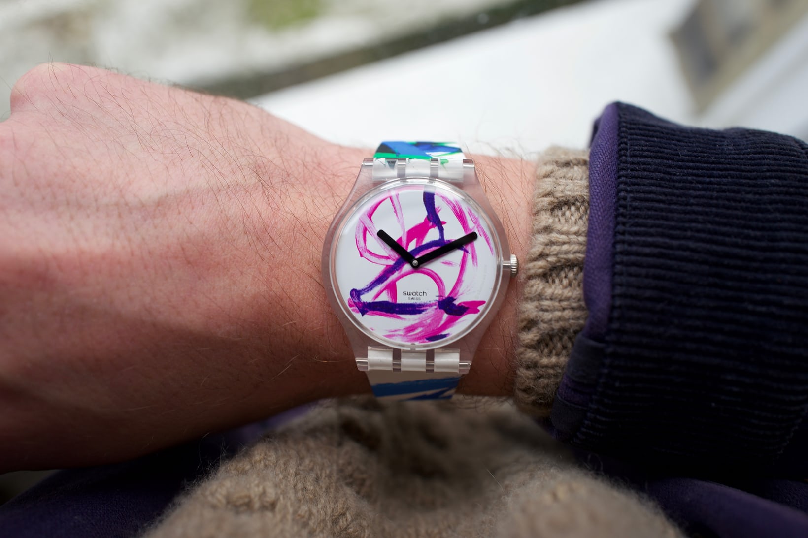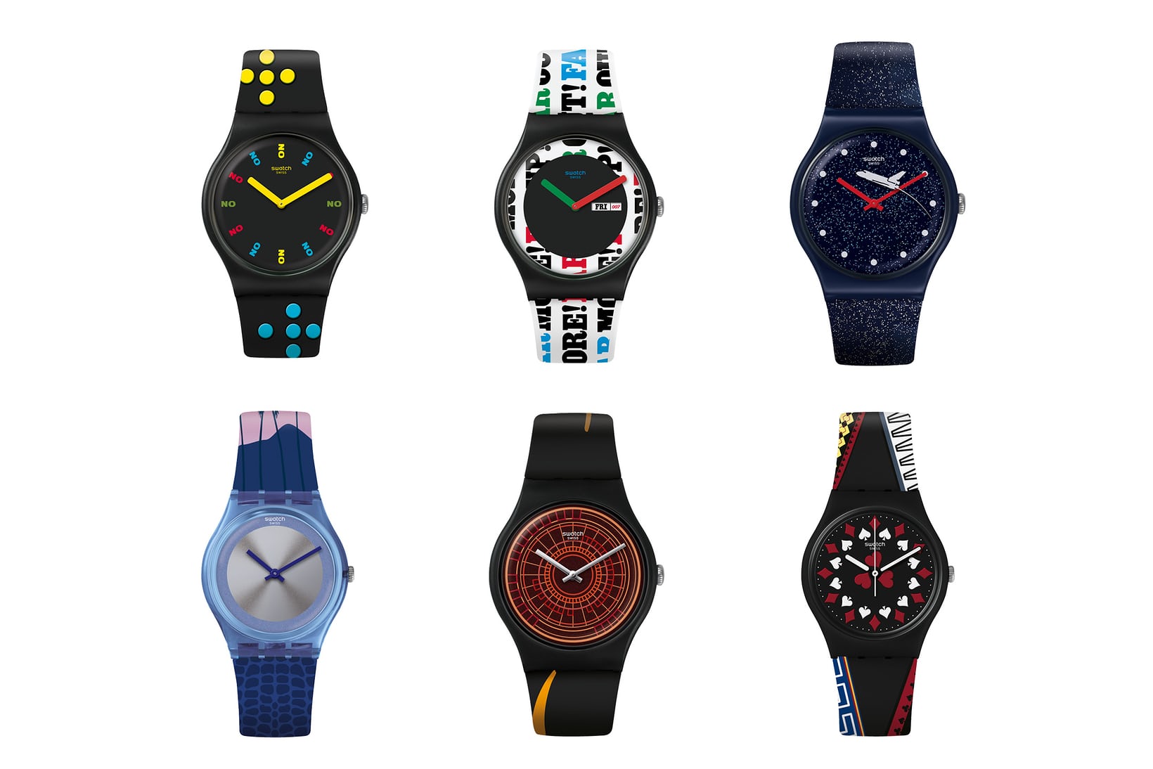 現在、このコレクションは「Swatch & Art」と呼ばれ、当初と同様の形式で継続中だ。このシリーズでは、クラシックなスウォッチのシルエットを取り巻く無限の創造性をもちつつ、目まぐるしく増え続けるコレクションを展開している。色、形、パターン、スタイル、効果、そして個性などの多様性は全て、1980年代のなめらかでまばゆいばかりの化粧板と、スウォッチの革新的なアイデアにまで遡ることができる。つまり、スウォッチの代表的なデイリーウォッチを、伝統的な時計デザインに代わる遊び心のあるものにしているのだ。