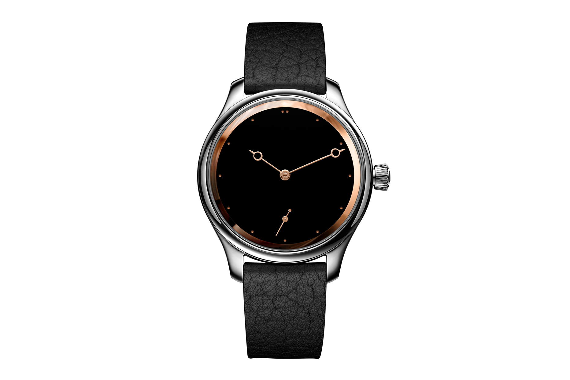 H.モーザーはAC/DC(オーストラリア出身のロックバンド)を見習ったのだ。新年早々、同ブランドはブラックに回帰し、メンズウェアで有名なアーモリー(The Amoury)との新しいコラボレーションウォッチを発表した。しかし、音楽への言及はこれだけにとどまらない。この時計の正式名称はエンデバー・スモールセコンド トータルエクリプス(皆既日食)で、エンデバーのケースにクラシックな懐中時計からインスピレーションを得たデザインを施した38mmサイズのモデルだ。さらにダイヤルには光の99.965%を吸収するベンタブラック®︎と呼ばれる超暗色の独自素材が使用されている。