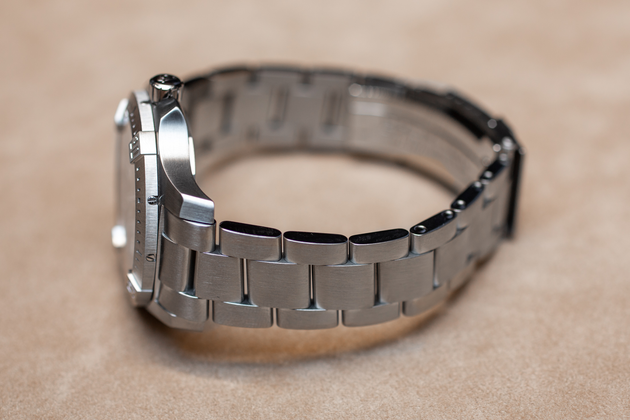 面白いオフホワイトとマット仕上げのシルバーダイヤルは、独特の魅力と手首での存在感を保証してくれる。