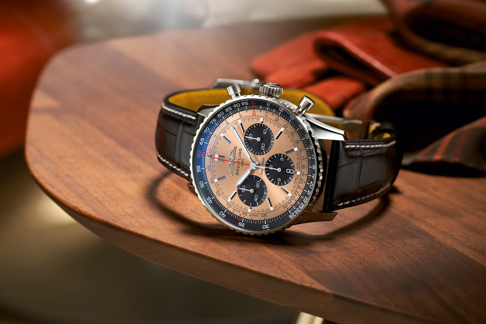 愛好家のあいだで正確な日付について議論されているが、ブライトリングによると、2022年はナビタイマーの70周年にあたるとのことだ。ブライトリングはこれを記念して複数の、つまり46mm、43mm、41mm、ステンレススティール、レッドゴールドのナビタイマーコレクションを発表した。サイズだけでは物足りないという方には、13種類のダイヤルから選ぶことができる。