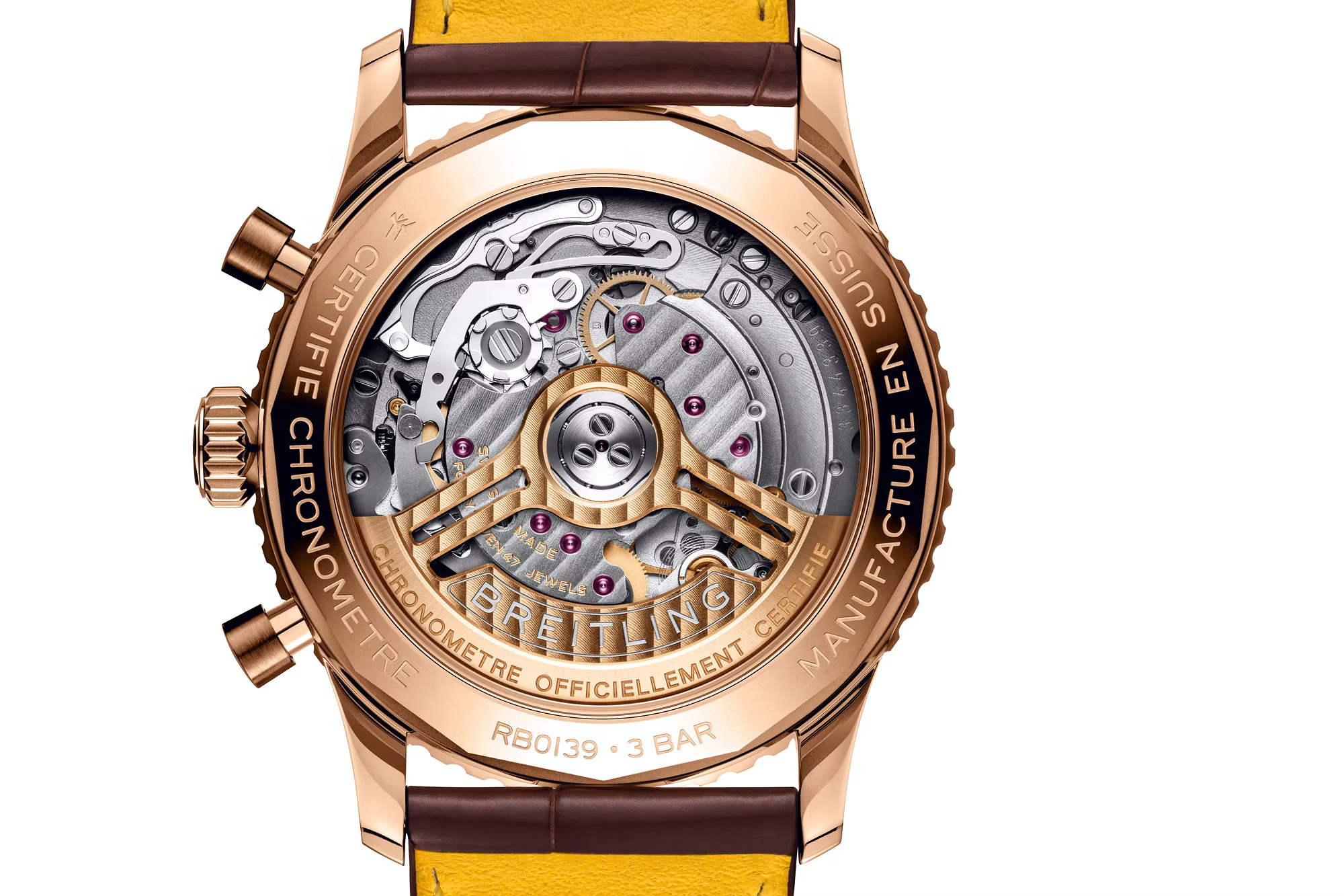 2022年のナビタイマーは、円形計算尺、バトンインデックス、3連のクロノグラフカウンター、ノッチ付きベゼルなど、50年代のナビタイマーの要素をすべて受け継いでいる。最も顕著な変化は内部で、COSC認定のブライトリング・マニュファクチュール Cal.01が搭載されたことだ。このキャリバーはコラムホイールクロノグラフで、70時間のタフなパワーリザーブを誇っている。また、6時位置には新たに日付表示機能を搭載した。