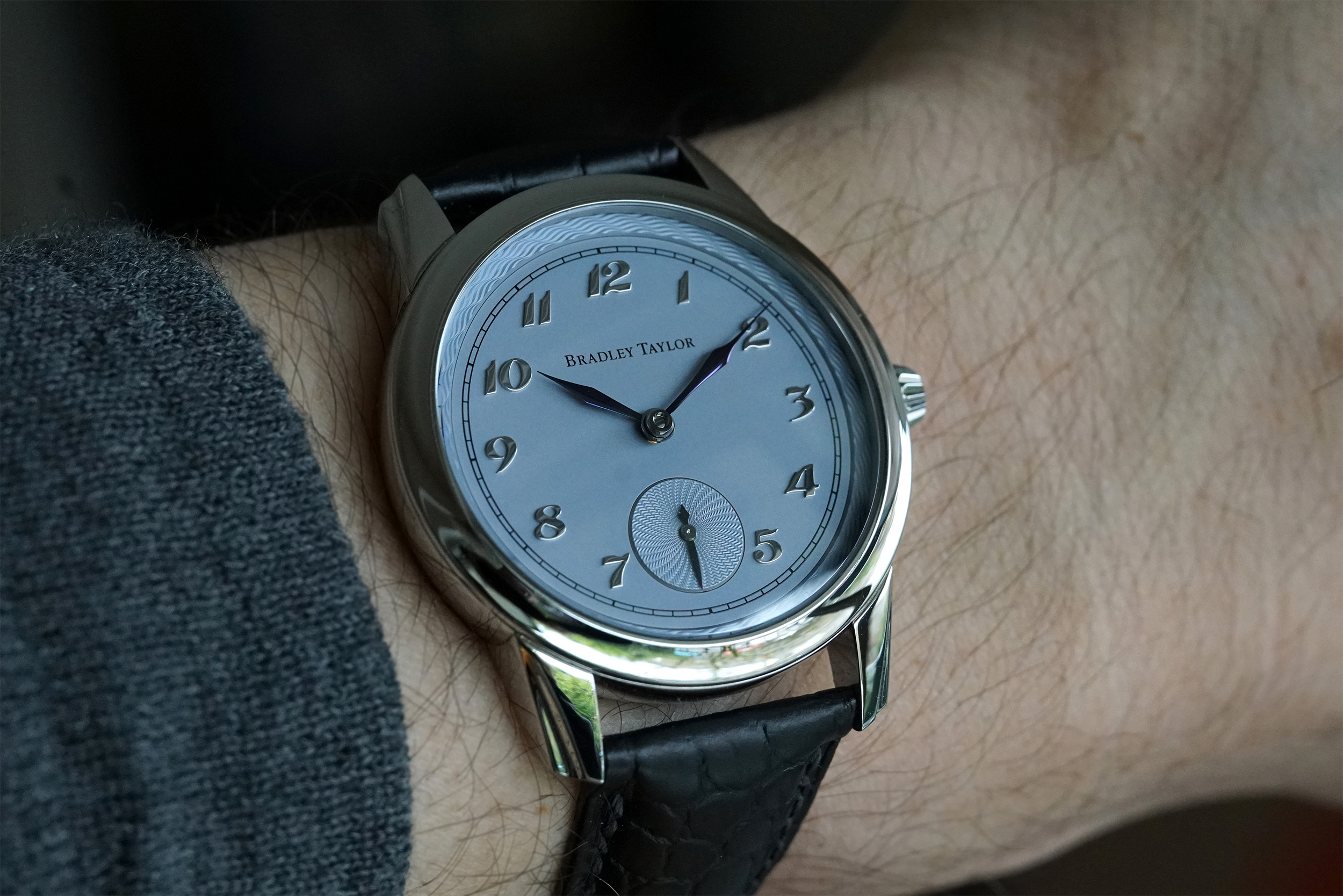 「人はその価値に気づくか、気づかないかのどちらかです」とテイラーは言う。「結局のところ、時計の品質に責任をもつのは自分です。時計には僕の名前が記されています」。時計を構成する全ての部品は、テイラーが手作業で製造する部品を補完するために、可能な限り最高のサプライヤーから調達されている。例えば、マイクロローターのムーブメントは、ヴォーシェ社のものを使用している。ローターは、エンジンターンドのスモールセコンドダイヤルに合わせてエンジンターンドデザインになっている。ダイヤルカラーなど、時計のいくつかの部分は、購入者の好みに合わせて調整することができる。