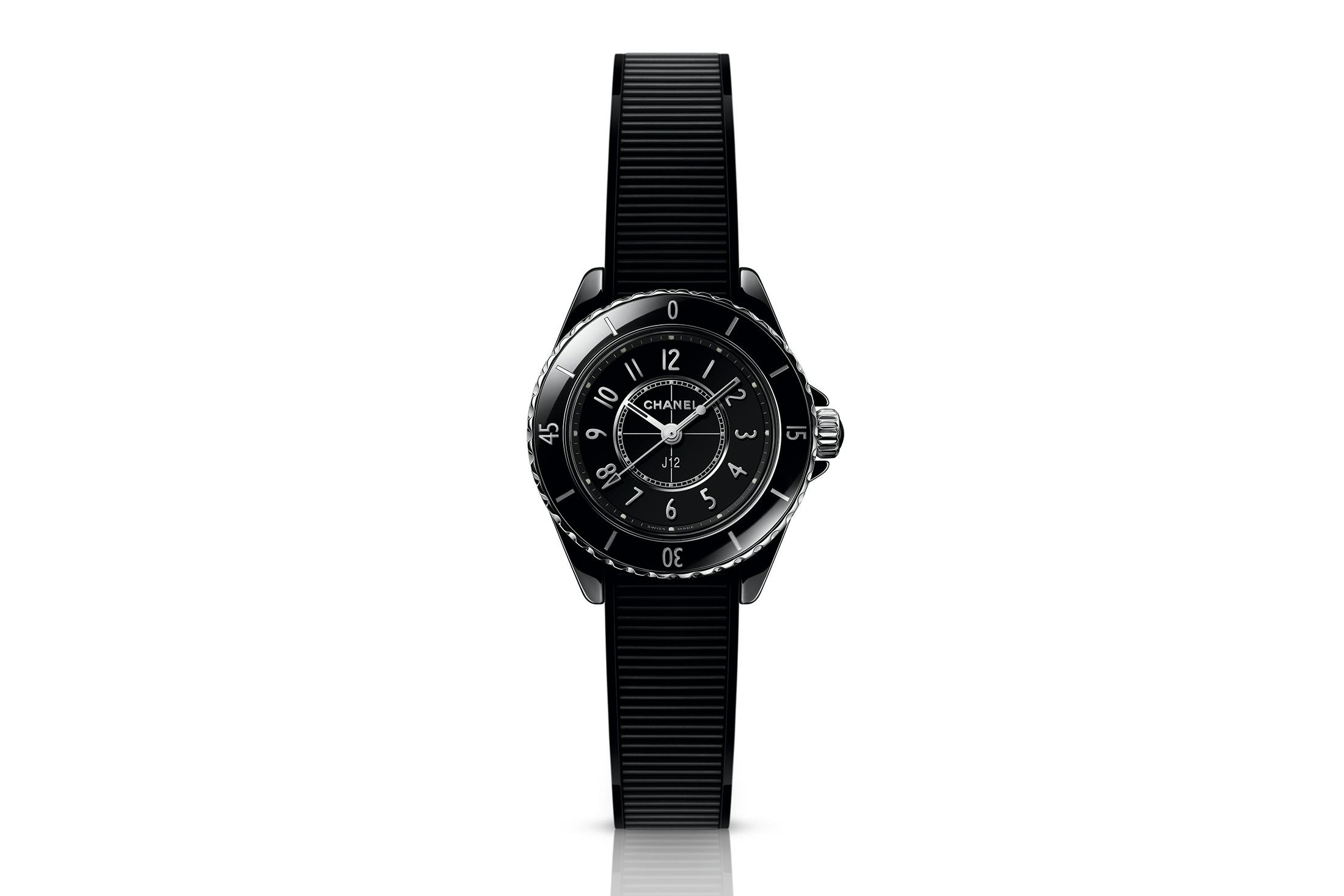そんなJ12に新たに加わったのが、J12 28MMである。スポーティな雰囲気はそのままに、ケースサイズを28mmへとコンパクトにまとめた新作だが、今回のポイントは単なる小径化にとどまらない。コレクションとして初めてラバーストラップ仕様も用意され、ラインナップの幅を広げたのだ。それでもセラミックの質感、白黒のモノトーン、滑らかなケースラインといったJ12の持ち味はしっかり受け継がれている。