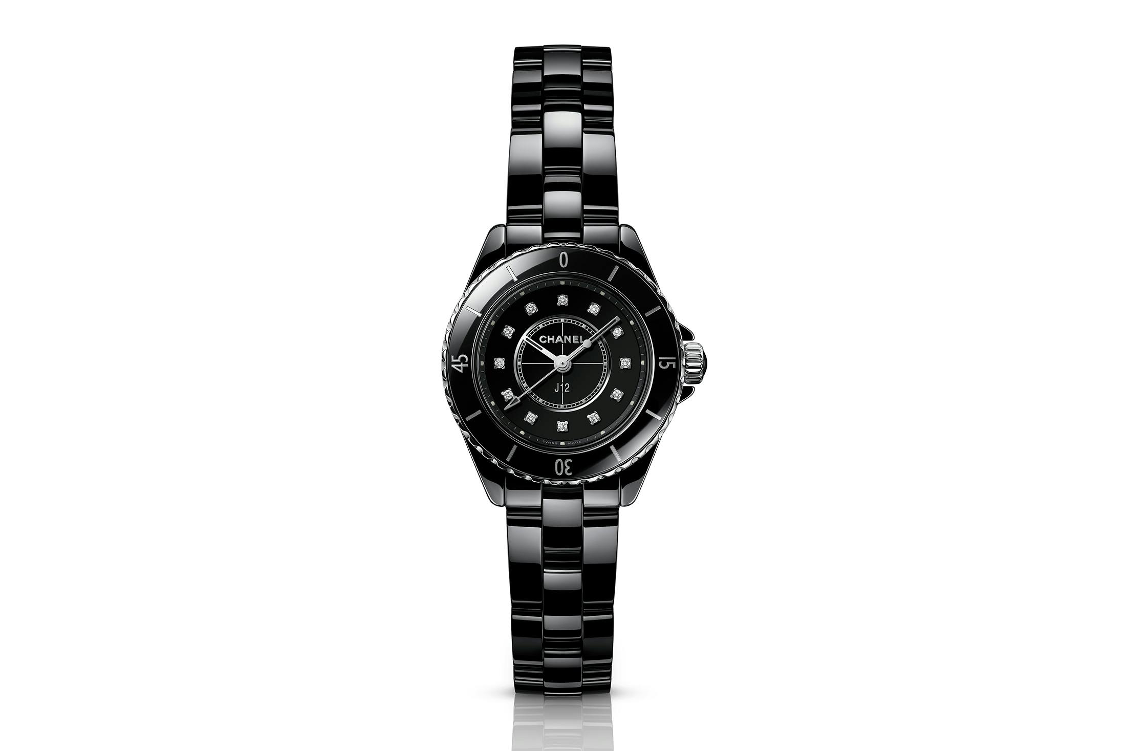 プレス画像を見る限り、J12 28MMは単なる小径版というより、J12らしい顔つきを崩さないよう、ダイヤル全体のバランスを見直したモデルに見える。ラインナップは全6型。セラミックブレスレット仕様が5型あり、ブラックまたはホワイトダイヤルに数字インデックスを配した2型が各90万7500円、同じくブラックまたはホワイトダイヤルに12個のブリリアントカットダイヤモンドをインデックスにセットした2型が122万1000円、ブラックセラミックにゴールドトーンのインデックスと針を合わせたモデルのみ数量限定で112万2000円、ブラックラバーストラップ仕様は83万6000円(すべて税込)だ。
