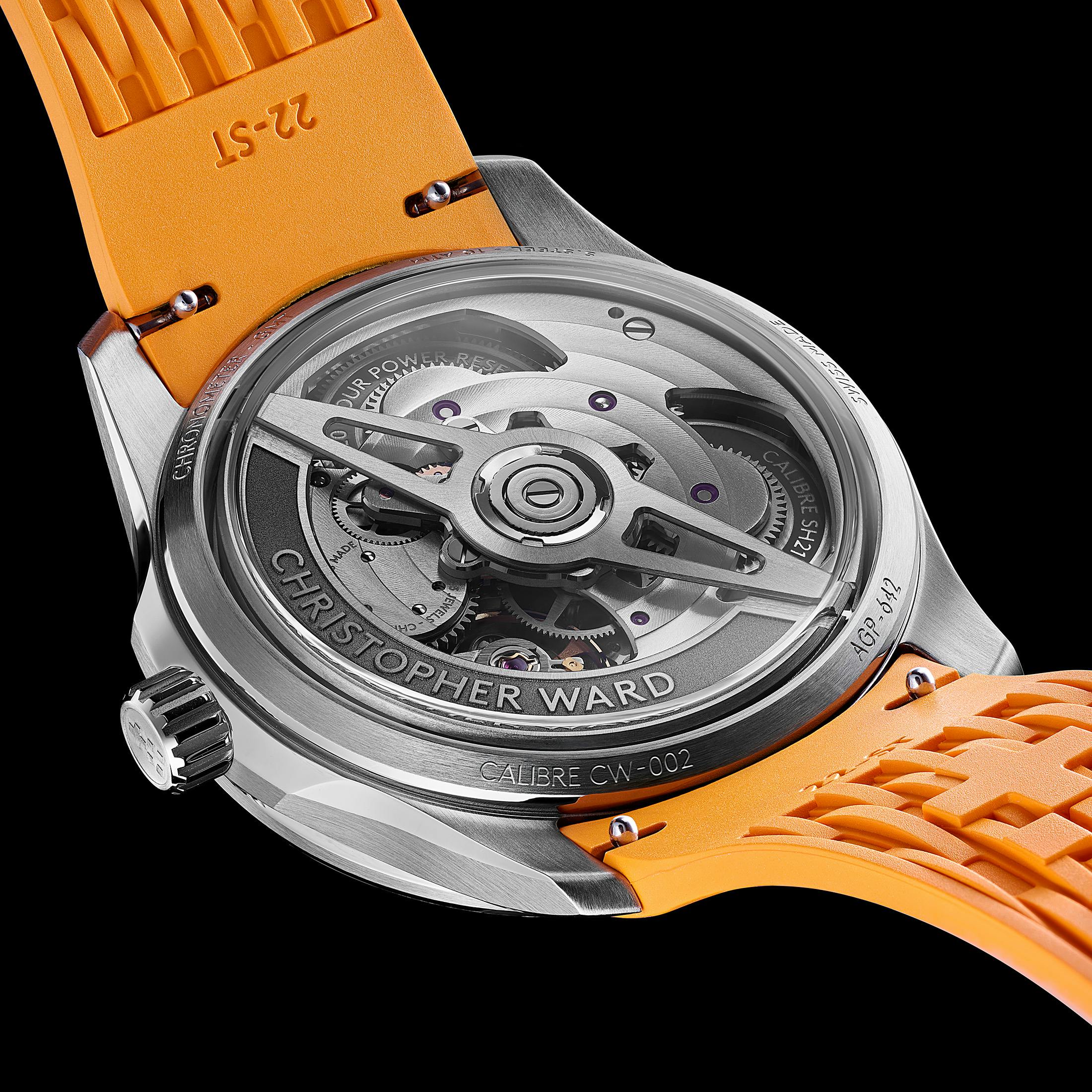 同社によれば、CW-002は既存のCW-001ムーブメント(旧SH21)から新たに設計された16個の部品と7個の改良部品を追加することで、フライヤーGMT機能とCOSC認定の-4秒から+6秒の精度、そして5日間のパワーリザーブを実現したという。CEOのマイク・フランス(Mike France)氏ら経営陣によれば、ムーブメントの厚みを抑えることは容易ではなかったそうだ。「この時計はピュアな楽しさだけではなく、多くの困難を伴いながらも完成に至ったモデルです」とフランス氏は語る。