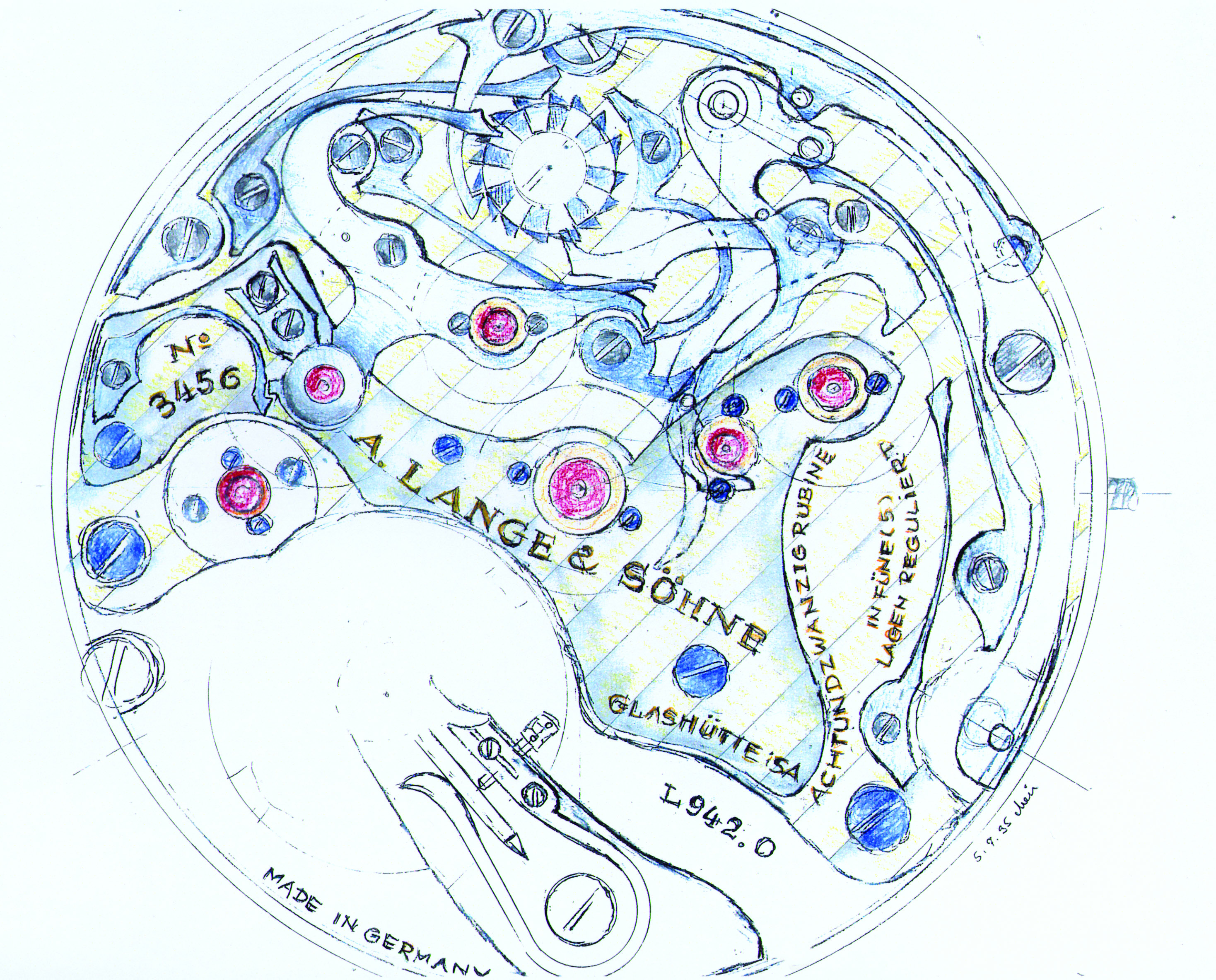 1995年に製作された試作品のスケッチ。1815クロノグラフのムーブメントはランゲCal.942.1だ。
