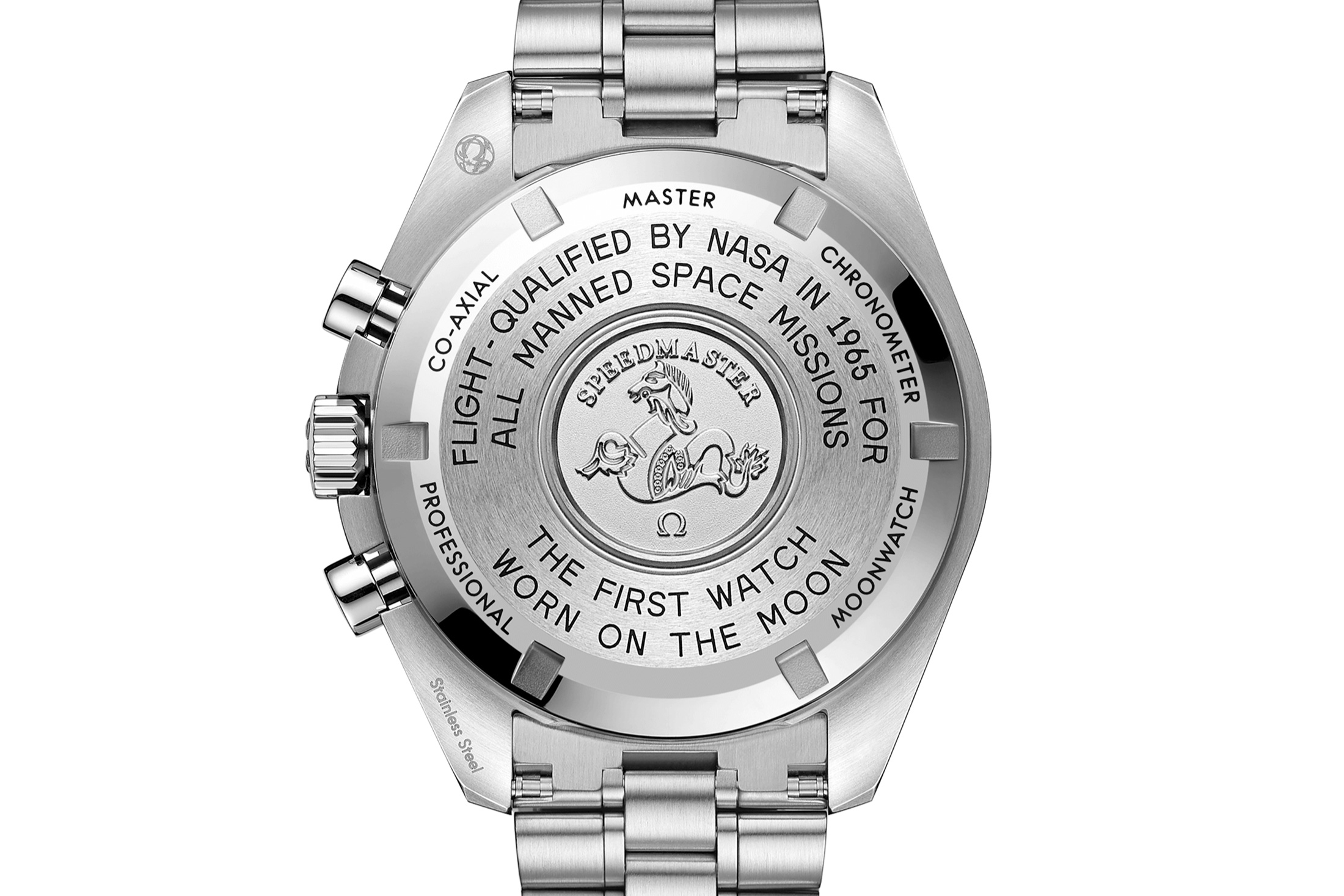 ヘサライト風防のスピードマスター プロフェッショナルは、ソリッドケースバック仕様。新しい310.30.42.50.01.001のケースバックには、ごくわずかな変更を見ることができる。