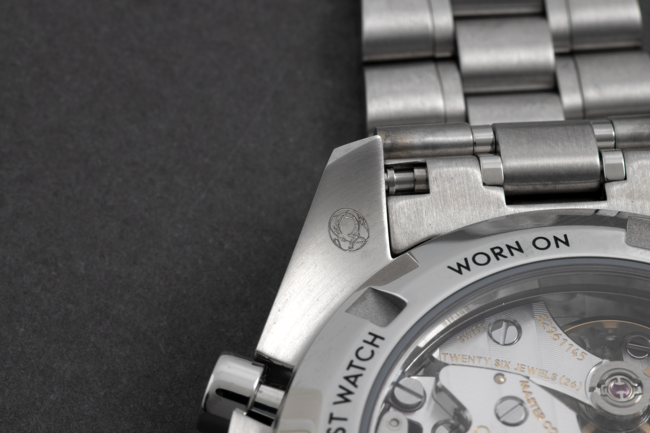 オメガの地球儀は、ソリッドケースバックの縁から2時位置のラグの裏側に移動し、4時位置のラグにはケースの材質(ステンレススティール、Au750など)が記載されている。また、8時位置のラグにはシリアルナンバーが記載されていないが、プレス画像であるためにデジタルで消去されている可能性がある。