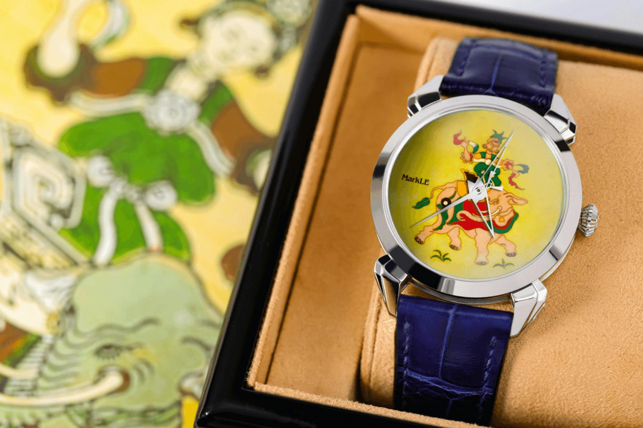 一方のマーク・レ(MarkLE)は、ベトナムの歴史や民間美術を文字盤上の物語として再構成するブランドである。歴史的人物や伝統的な図像を、七宝焼きなどの工芸技法を通して身に着けられる物語へ翻訳しているのが特徴で、より直接的にベトナムの歴史を物語へ変える。今回取り上げるバーチエウ ライディング エレファントは、侵略者に抗した英雄バーチエウが象にまたがる姿を、東湖版画に着想を得た七宝焼き文字盤で表現したモデルだ。39mmケースに自動巻きのセリタ製SW300-1bを搭載し、色線の仕切りや焼成を何度も繰り返すことで、絵画のような奥行きを獲得している。価格は4500ドル(日本円で約70万円台)前後で、マーク・レのラインナップ全体では1490〜6000ドル(日本円で約23万〜95万円)ほど。
