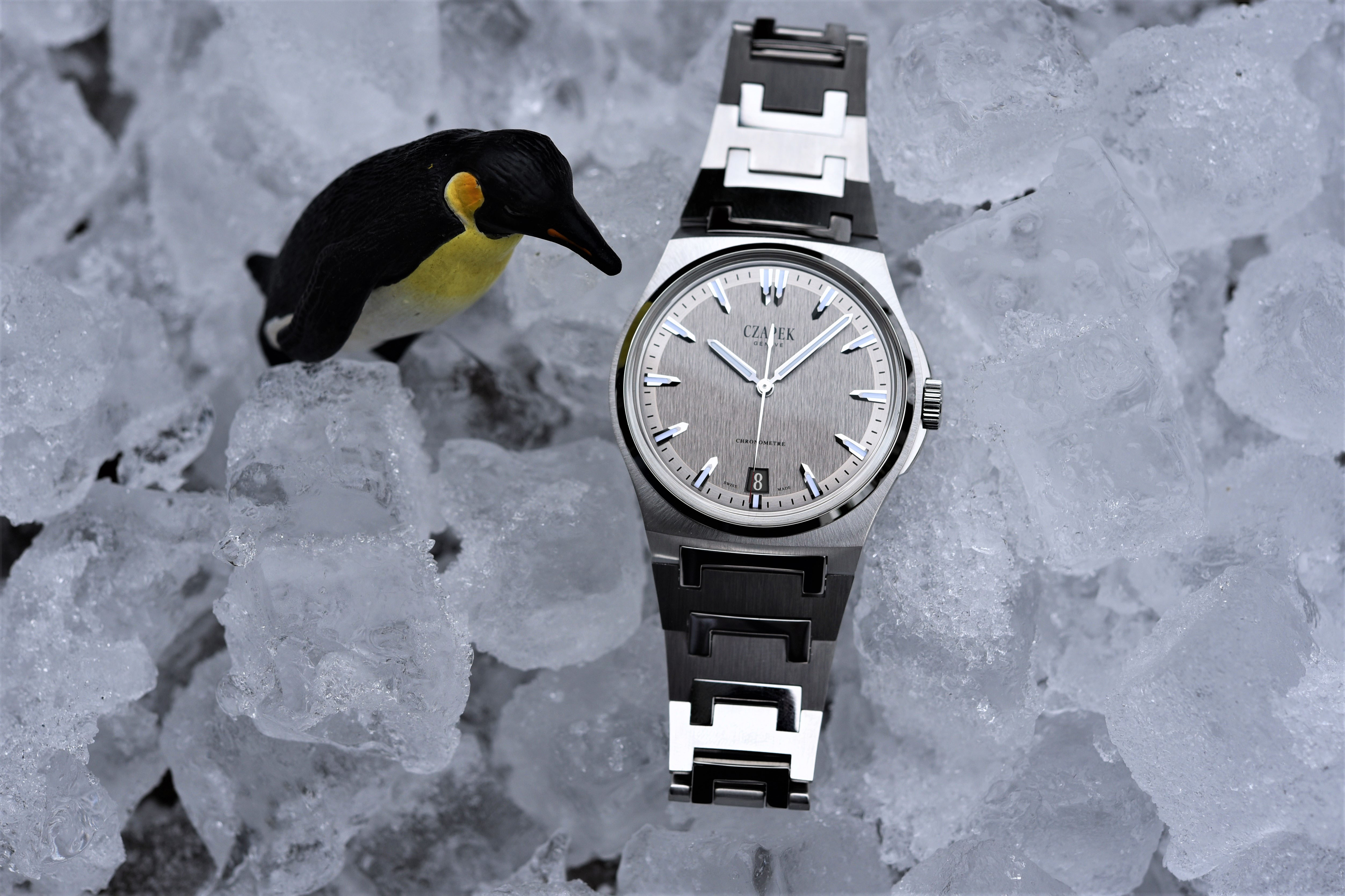 クラシックスタイルのドレスウォッチで知られるハイエンドの独立系ブランドが、近年ステンレス製スポーツウォッチの分野に参入している。ウルバン ヤーゲンセンのワンや、ローラン・フェリエのトゥールビヨン グランスポーツなどがそれだ。昨年、非常に大きな独立系ブランドであるショパールは、アルパイン・イーグルでこの分野に参入した。また、独立系ではないが、A.ランゲ&ゾーネは、オデュッセウスを発表し多くの人を驚かせた。最近発表されたこうしたモデルの中で私が見落としているものもあるかもしれないが、チャペックのアンタークティックは、最も魅力的な時計の1つだ。テール・アデリーの文字盤を見ているだけでコレクションを実際に見てみたくなる。ケースとブレスレットの融合は、写真で見ると非常に幻想的に見えるが、この融合を実現するのはデザイナーにとって簡単なことではないのは間違いない。とはいえ、このようなブレスレットは実際に触らないことには評価は難しいのだが、そう遠くない将来、このコレクションを手にする機会があることを願っている。