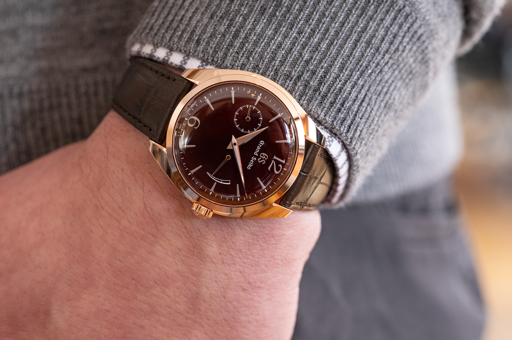 私が着用したことのある唯一の手巻きムーブメント搭載のグランドセイコーはSBGW231で、これは複雑機構も日付表示もない直径37mm、厚さ11.6mmの時計である。この時計の厚みは今回の「スリム」限定エディションと同じだが、今回のモデルのほうがいくぶん腕にしっくりと馴染む(これはおそらく縦横比の違いによるものだろう)。