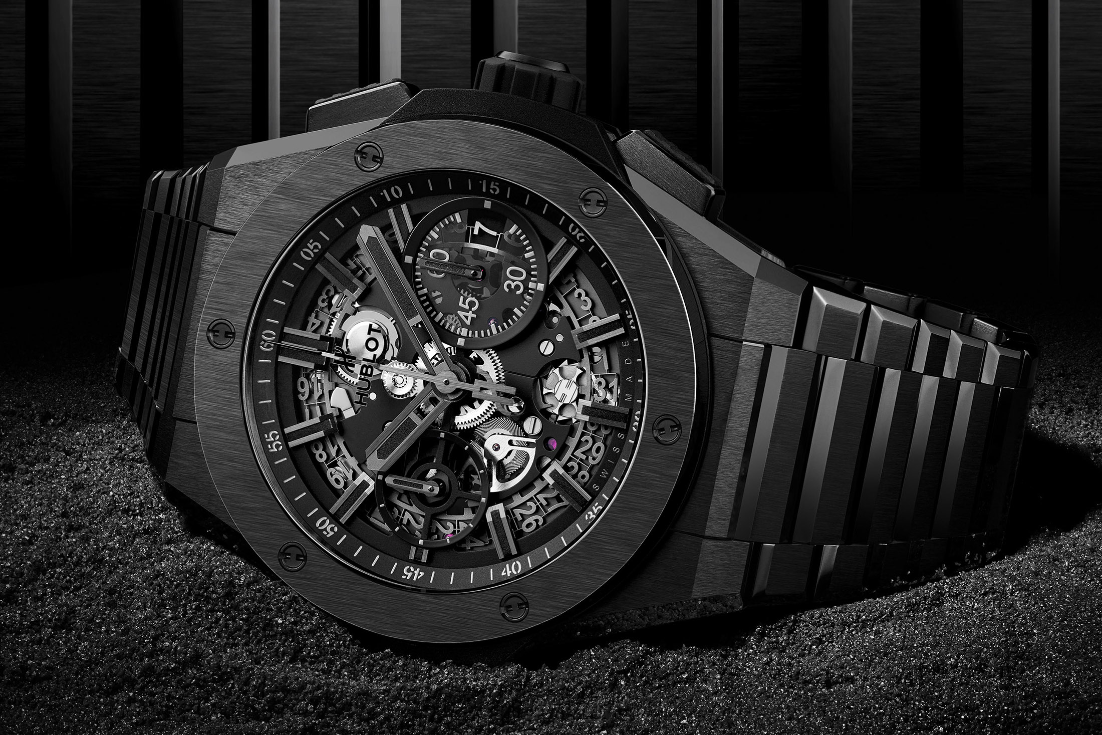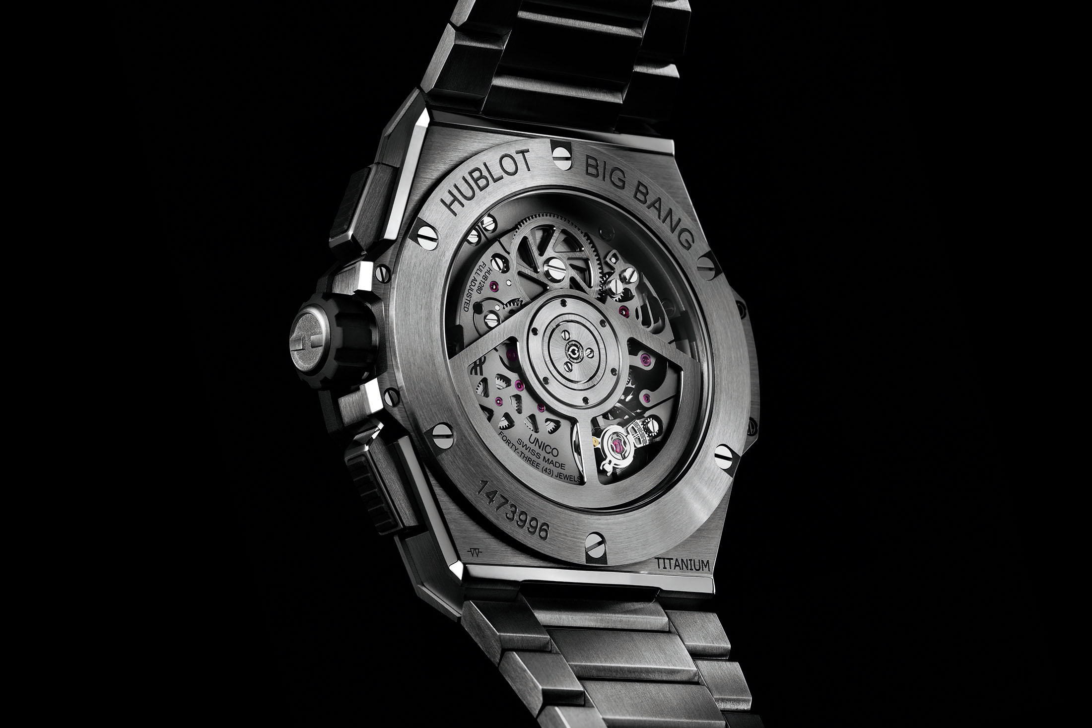搭載するムーブメントHUB1280は、従来のビッグ・バンから引き継がれており、コラムホイールをスケルトンダイヤル越しに鑑賞することができる。ブラックセラミックバージョンは、500本限定で、チタンとキングゴールドモデルは、通常生産だ。