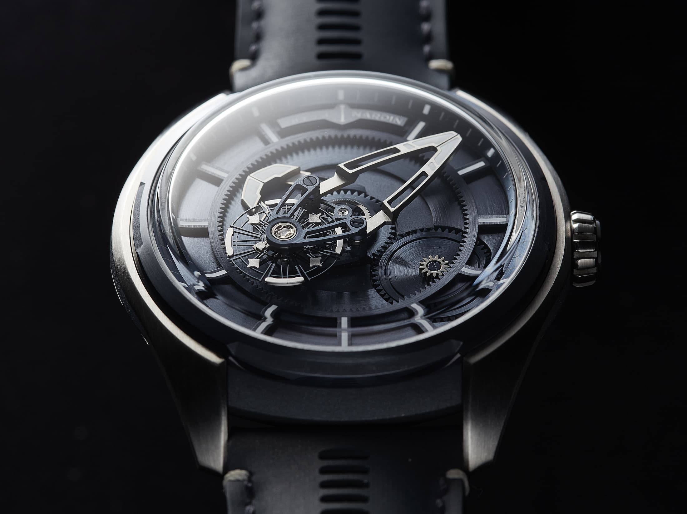 19世紀に誕生した重力を平均化するふたつの複雑機構は2010年、ユリス・ナルダンによってひとつに統合された。フリーク ディアボロは、センター カルーセルに、フライングトゥールビヨンを載せた意欲作である。分針を兼ねるカルーセルの上で回るトゥールビヨンのキャリッジは60秒で1周するため、フリークに初めて秒針が備わることとなった。脱進機はスイスレバー式だが、フリークらしくシリコン製となっている。