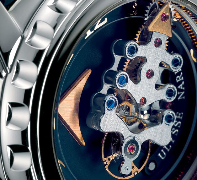 1980年代、機械式時計の魅力を再認識させたいくつもの傑作が生まれたことで、クォーツショックによる冬の時代は終えんの兆しを見せはじめた。ルードヴィヒ・エクスリン博士がユリス・ナルダンのために開発した「天文時計3部作」も、そのなかのひとつ。そして1990年代に入ると、さまざまなブランドが多彩な複雑機構をリリースし機械式時計は完全復活を果たす。天文時計3部作の成功により、ムーブメントこそが機械式時計の最大の価値と捉えた当時のユリス・ナルダンCEOロルフ・W・シュナイダーは、マニュファクチュール化を推進。その第一弾として世に送り出したのが、フリークであった。