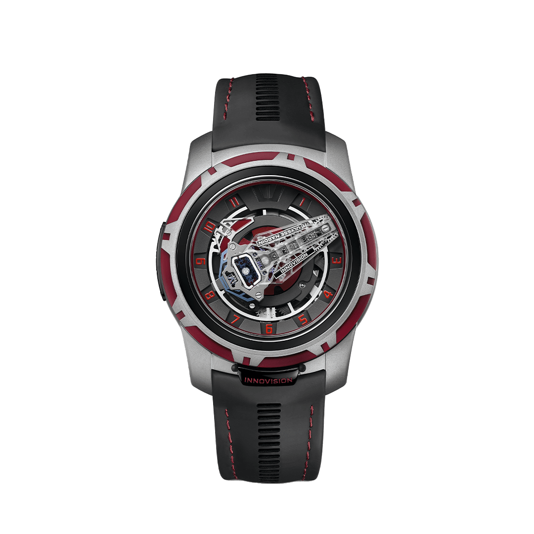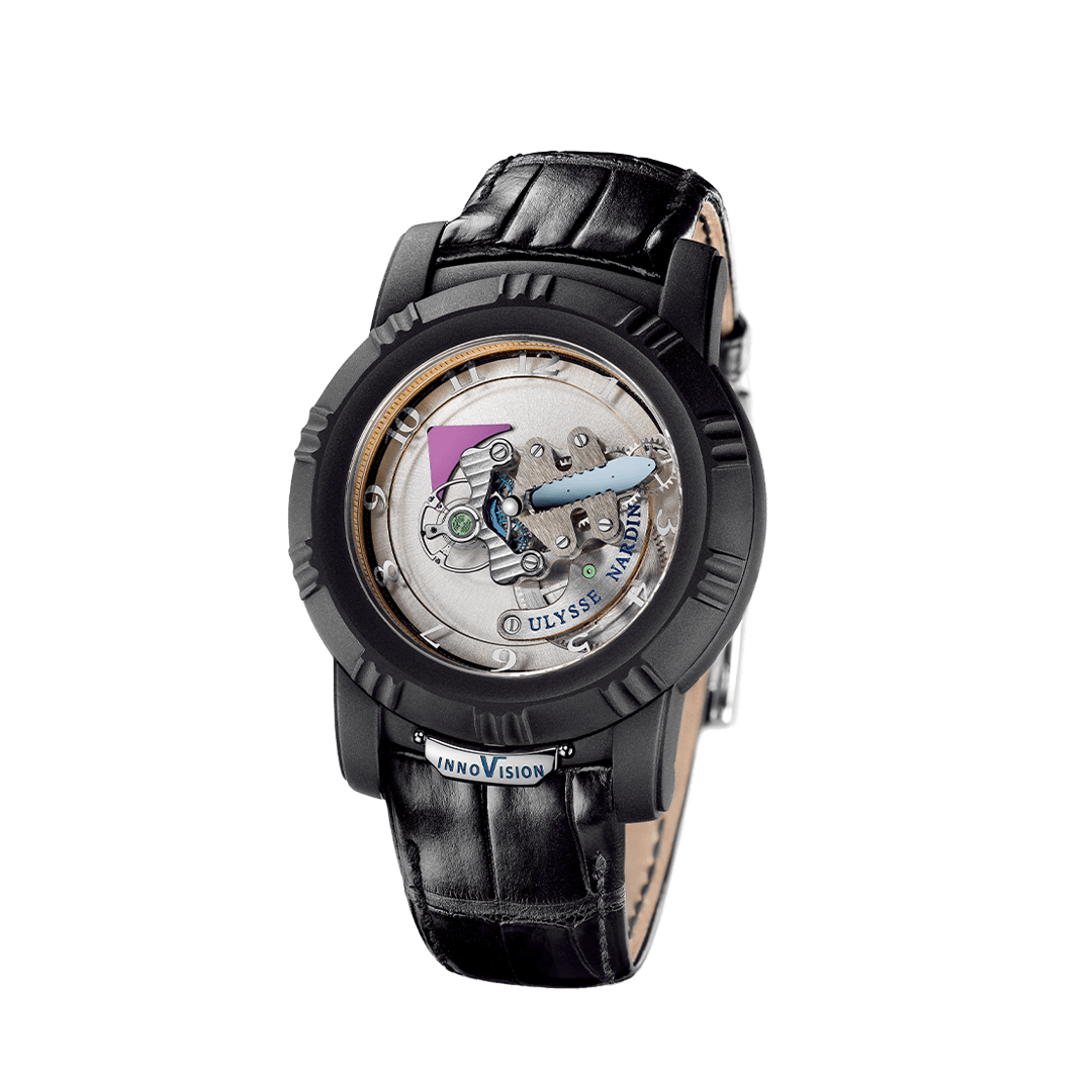 2007年に続く、コンセプトウォッチ イノヴィジョンの第2弾。デュアル ユリス脱進機は、シリコン製のロッキングストッパーに複数のブレードを与え、その張力で一定の力をテンプに伝達するデュアル コンスタント エスケープメントへと進化させた。