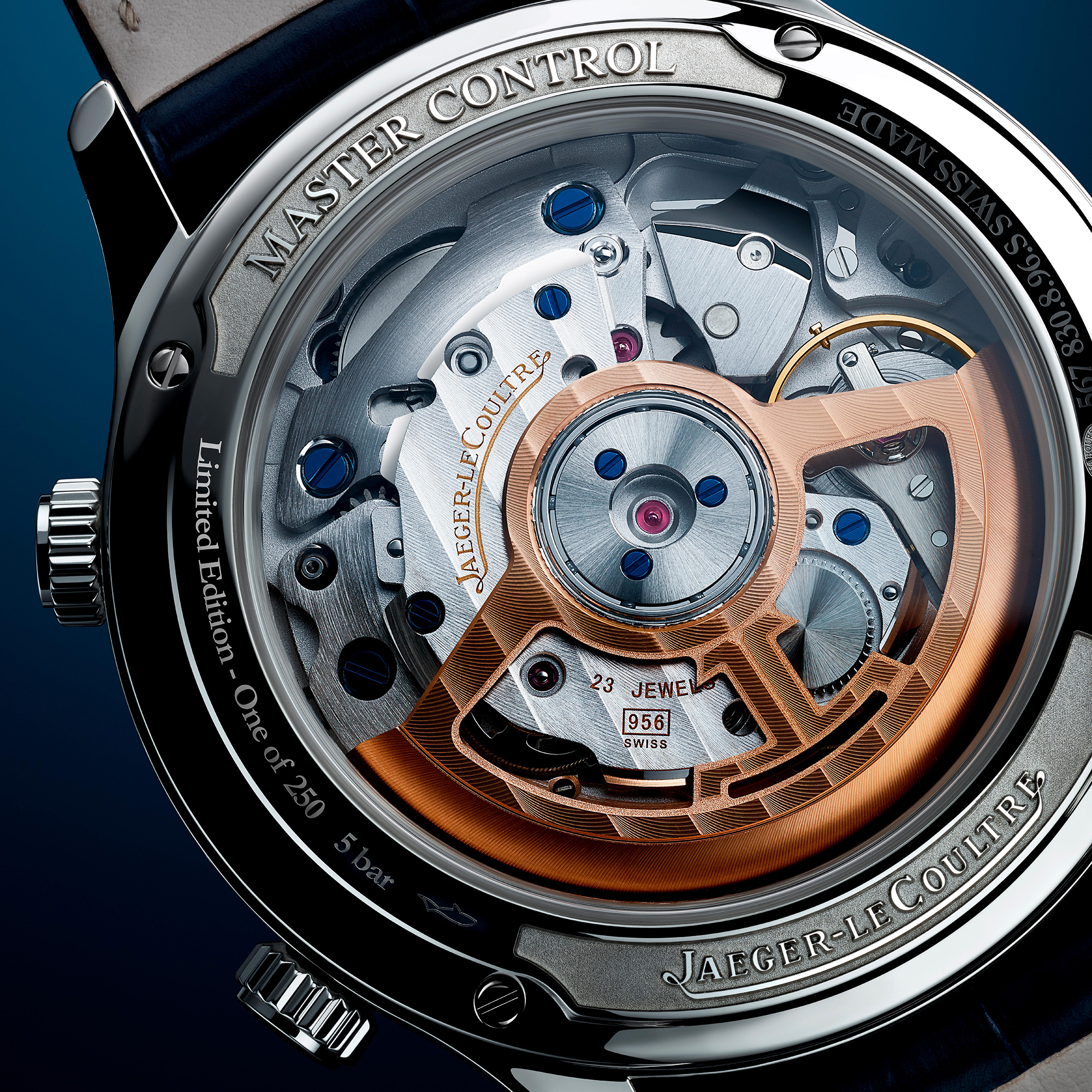 新作のマスター・コントロール・メモボックス・タイマーと新型のマスター・コントロール メモボックスはどちらも、新バージョンのCal.956を搭載している。以前のメモボックスでは、メカニズムは多かれ少なかれケースバックの後ろに隠されていた。これはアラームの増幅システムとしても機能していたのだ。956の新バージョンには、見栄えの良い新しいゴールドローターをもつ。アラーム用のゴングは、以前はケースの裏側に取り付けられていたが、956の新バージョンでは異なるアプローチが取られている。マスターシリーズの中でも非常に複雑なモデル―マスター・グランド・トラディション・グランド・コンプリケーションなど―で採用されているものと似た方法で、ケースの内側に直接はんだ付けされているのfs(もちろん後者のモデルでは、クリスタルに直接溶接されているものの、基本的な考え方は同じだ)。