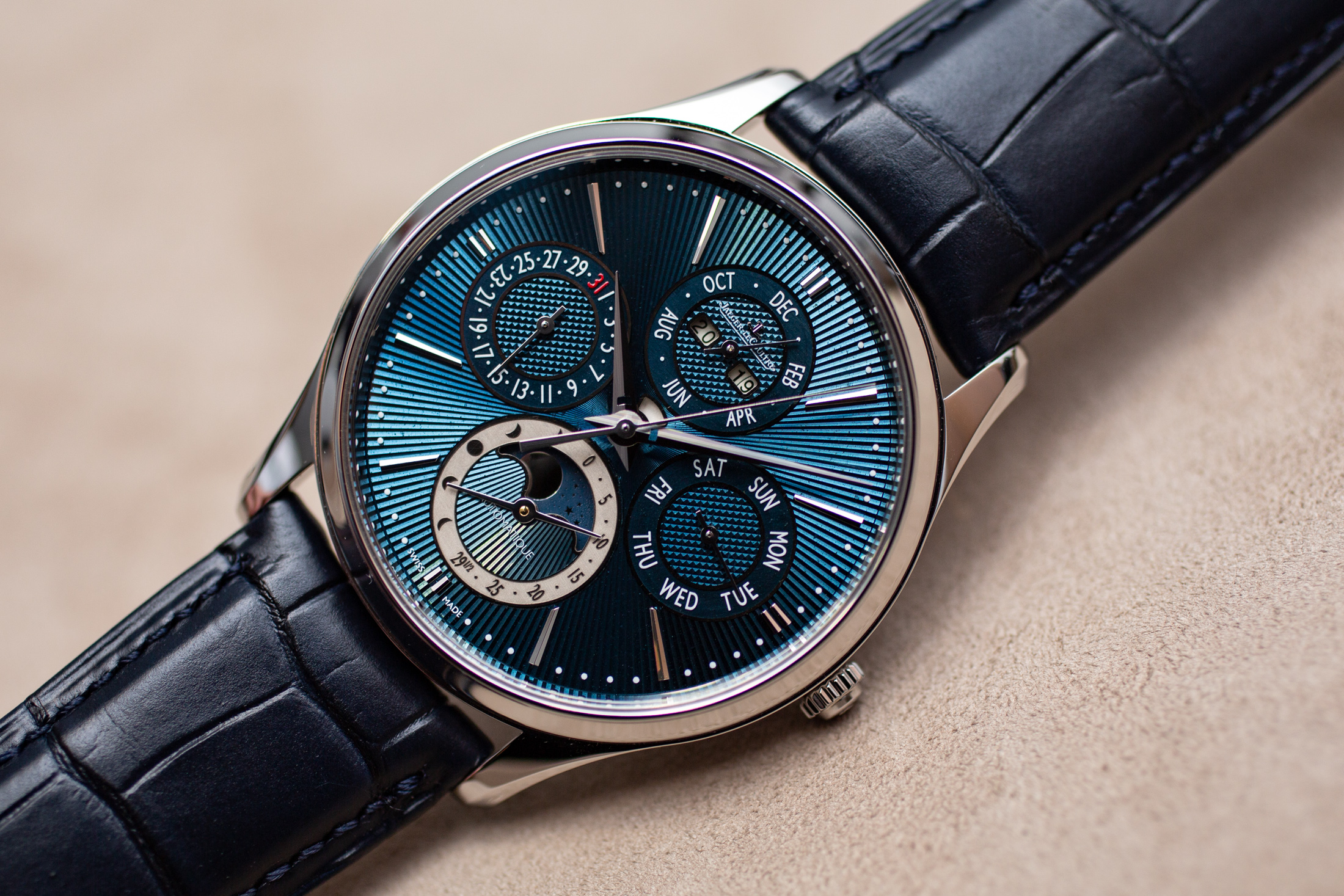 皆さんは2018年の12月、私たちがジャガー・ルクルトのマスター・ウルトラスリム・ムーン・エナメルを紹介したのを思い出すかもしれない。限定エディションの18KWG製ドレスウォッチであり、美しいブルー・ギヨシェ・エナメル文字盤と、既存のCal.925のパワーリザーブを約40時間から70時間に引き上げた高性能ムーブメントを特徴としていた。