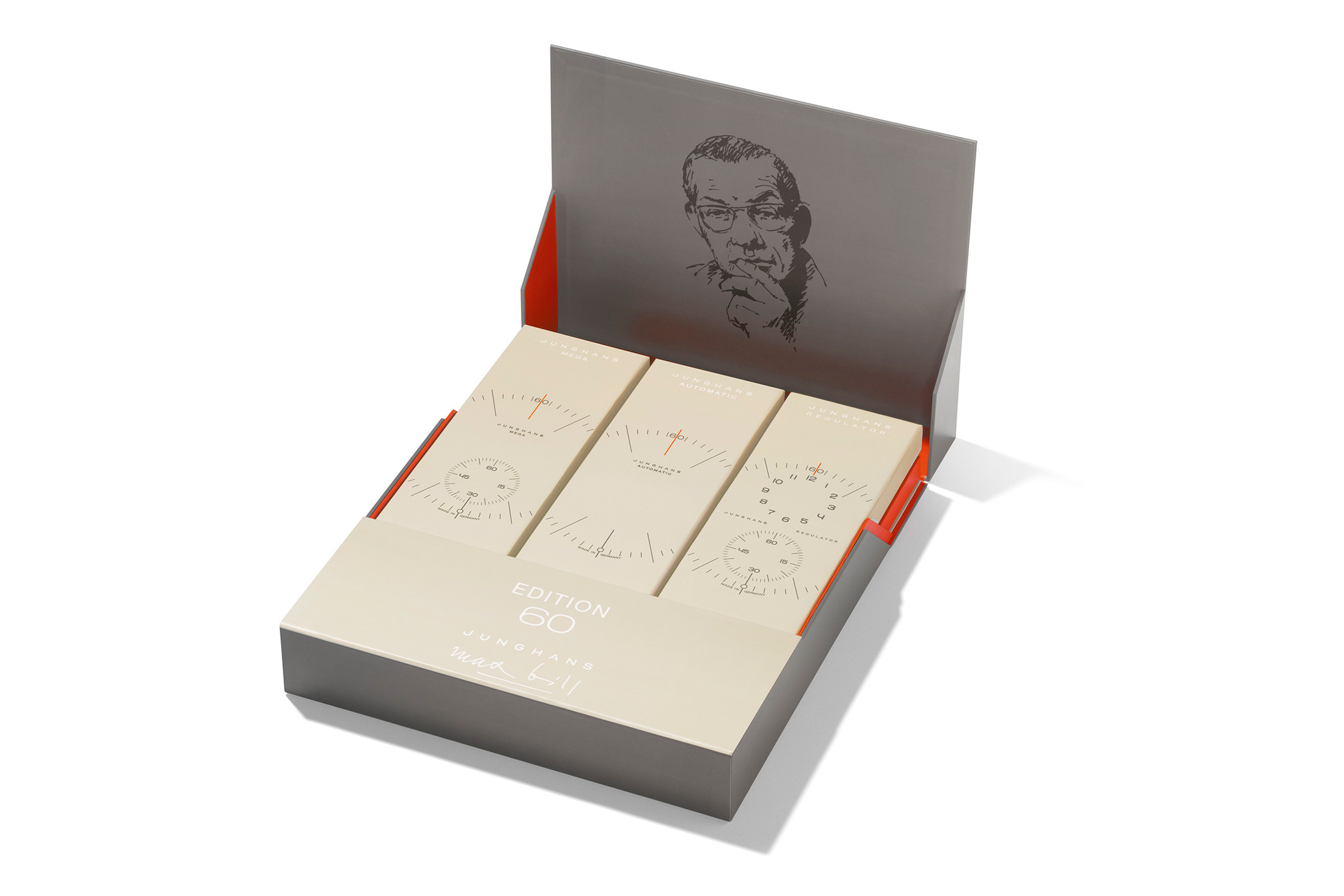 マックス・ビルのサインが入ったこの3本セットは、時計製造とバウハウスの影響を受けた彼のインダストリアルデザインの融合を愛するコレクターのために作られた。