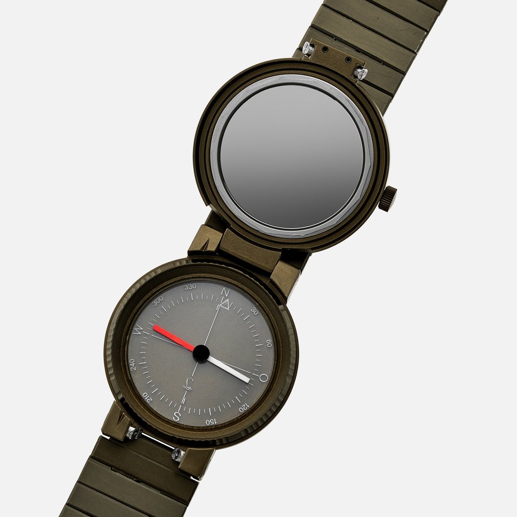 1980年代に発表されたポルシェ デザインのIWC コンパスウォッチは、時計の下に磁気コンパスが内蔵されている。