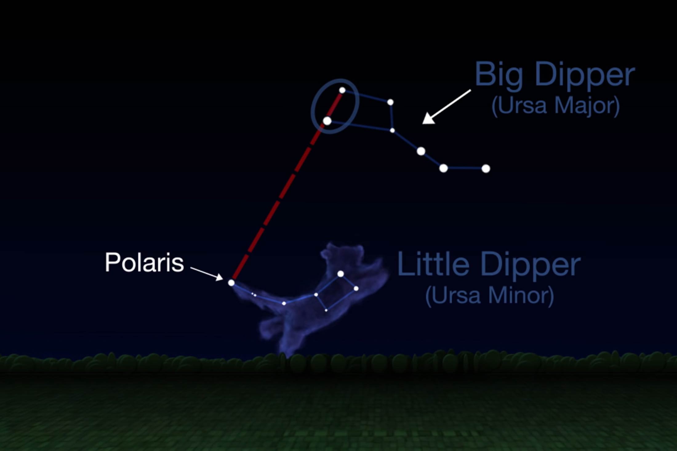 2点めは、夜だとこの方法は使えないということ。しかし北半球では北極星を見つけるだけでよく、北斗七星の鉢の一番外側の2つの星から、小斗七星の「持ち手」の最後の星に当たるまで、想像上の線を引くことで見つけることができる。