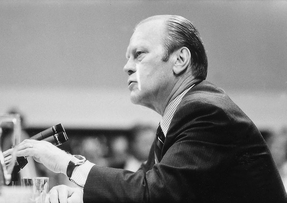 パルサーを着けて議会で証言するジェラルド・フォード大統領。(写真協力: Mark Sirianni)