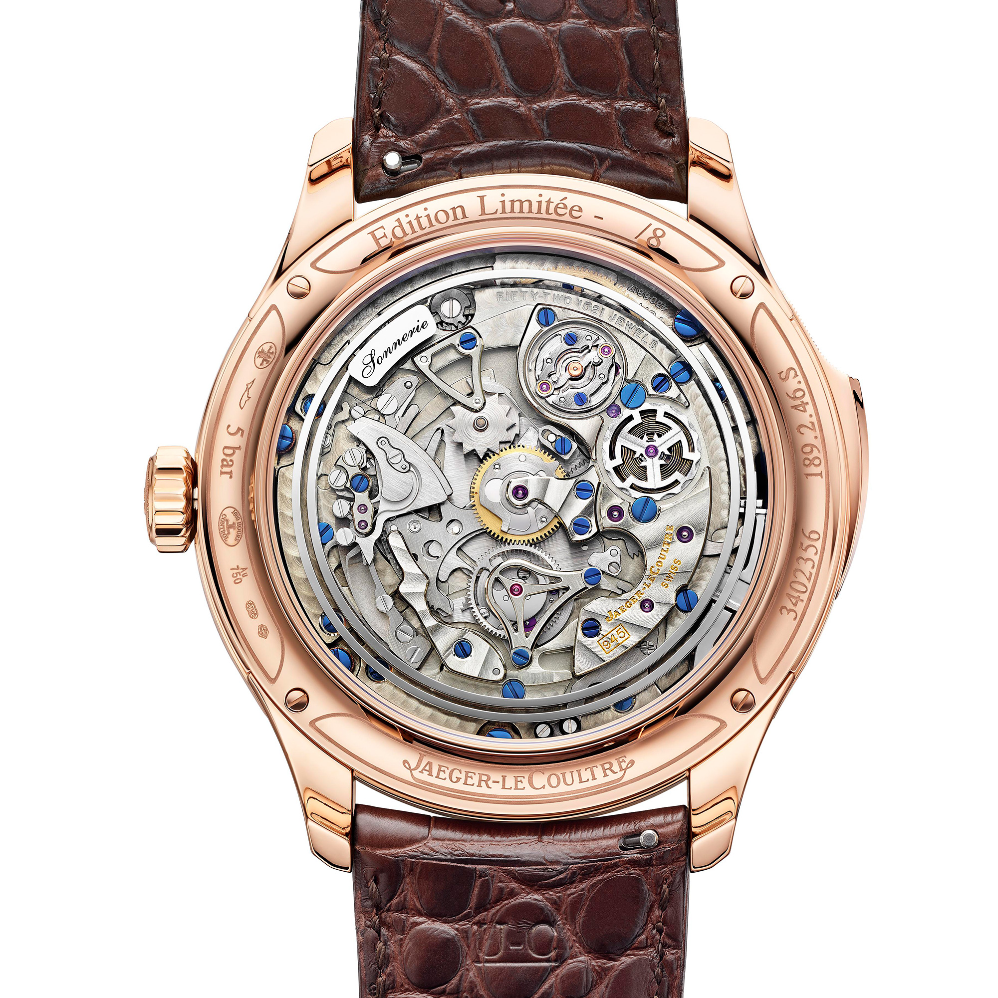 技術的には、この時計には他にもいくつかのイノベーションが組み込まれている。それはチャイム機構に関係するものだ。 リピーターのゴングを叩くハンマーはJLCの発明品で、いわゆる "トレビシュ・ハンマー"である(トレビシュとはカタパルトの一種で、中世の攻城戦用エンジンのこと)。通常のリピーターのハンマーは一枚のスティール製だ。しかしJLCのトレビシュ・ハンマーはヒンジ部分で連結されており、連結部にかかる力は湾曲したスティール製のスプリングによって制御されている。これらのハンマーは10数年前に導入された―2005年のマスターミニッツ・リピーター アントワーヌルクルトに初めて登場。