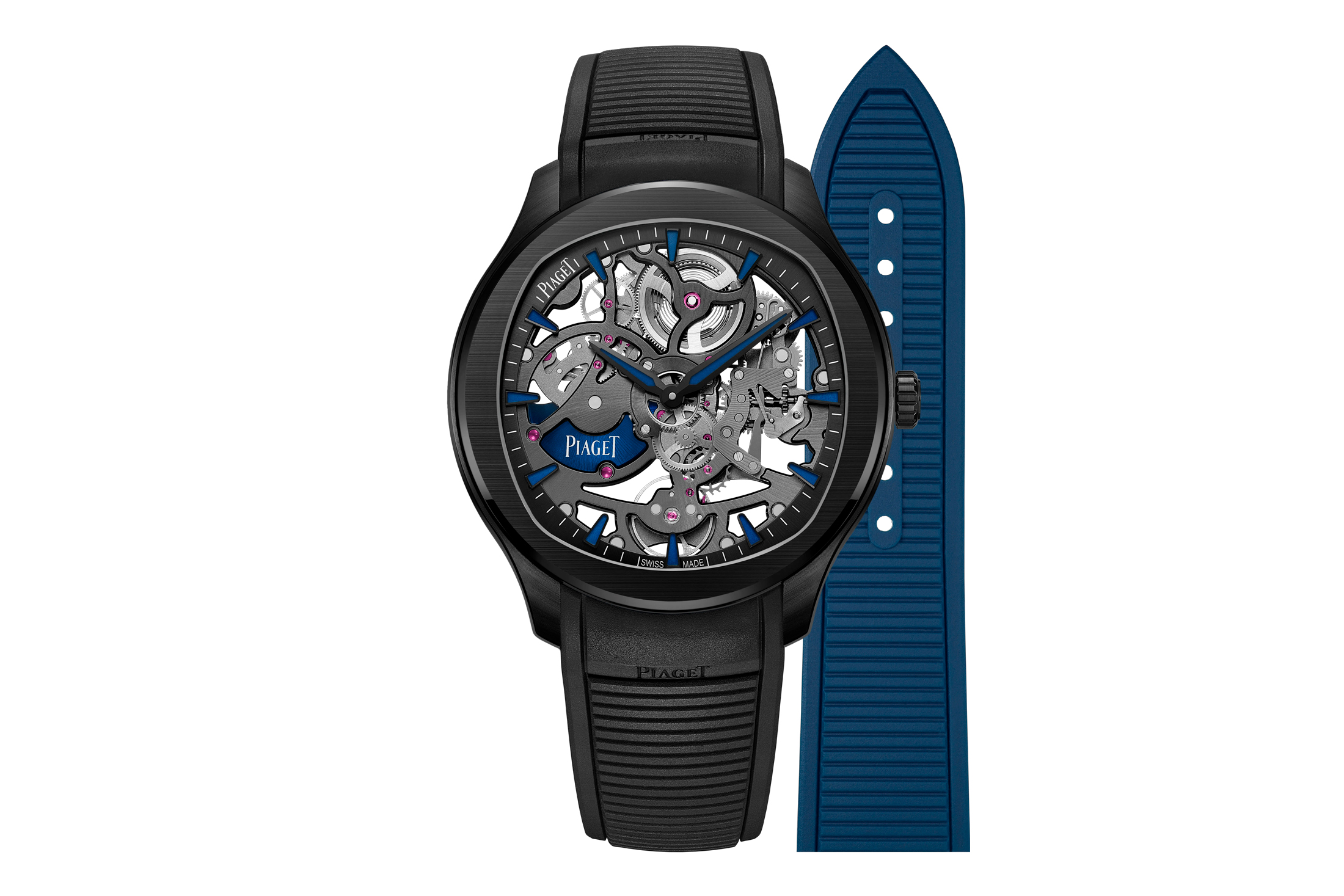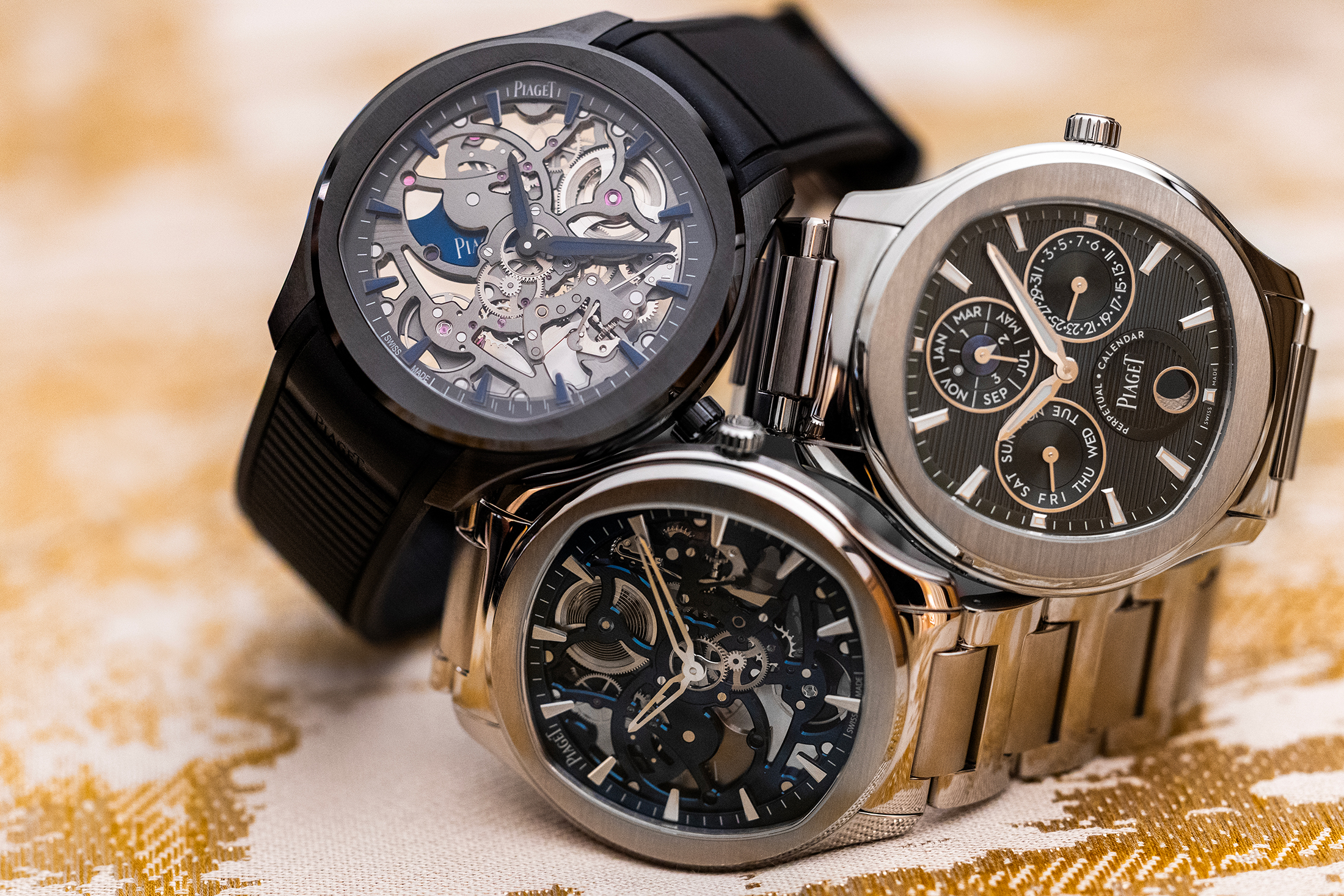 左からピアジェ ポロ スケルトン セラミック、ピアジェ ポロ スケルトン ブルー、ピアジェ ポロ パーペチュアルカレンダー ウルトラシン。