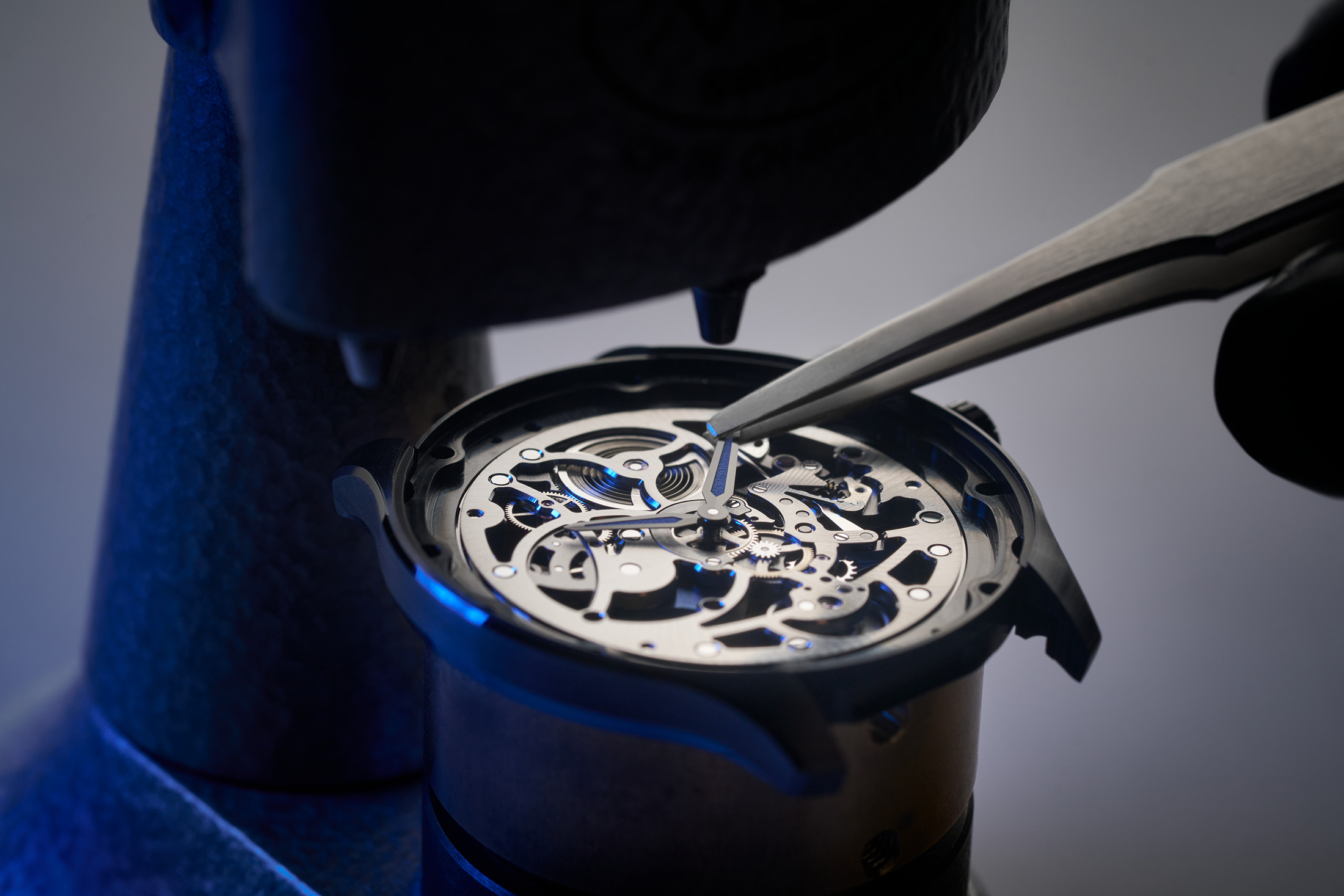 メカニズムやその動作を楽しめることに加え、構成するパーツひとつひとつが美しく仕上げられ、表出するにふさわしい美観を備える。「薄いこともあって見えているものがすべてじゃないですか。心臓部もわかるし、隠すことなくすべてを露にしているところに、寄り添いたくなるような愛着が湧きます。裏からは、本当にいろいろな歯車が見られて、一般的な時計ではこれほどのものはないので感動ですね」