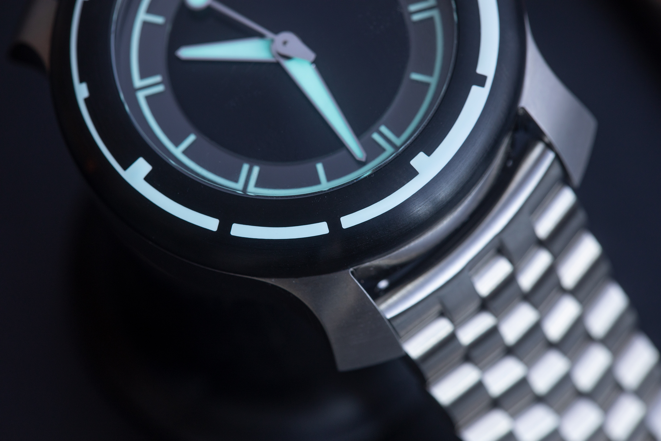 まず一見しただけで、初代モデルからずっと共通して見られるデザインの特徴から、この時計がミンの時計であることが明確に分かる。同社の時計に共通する3つの重要な要素は、視認性と抽象的デザイン要素のためにスーパールミノバを大量に使用していること、特徴的なフレアラグ、そして時計のサイズを合理的で古典的な範囲内に収めることへのこだわりだ。