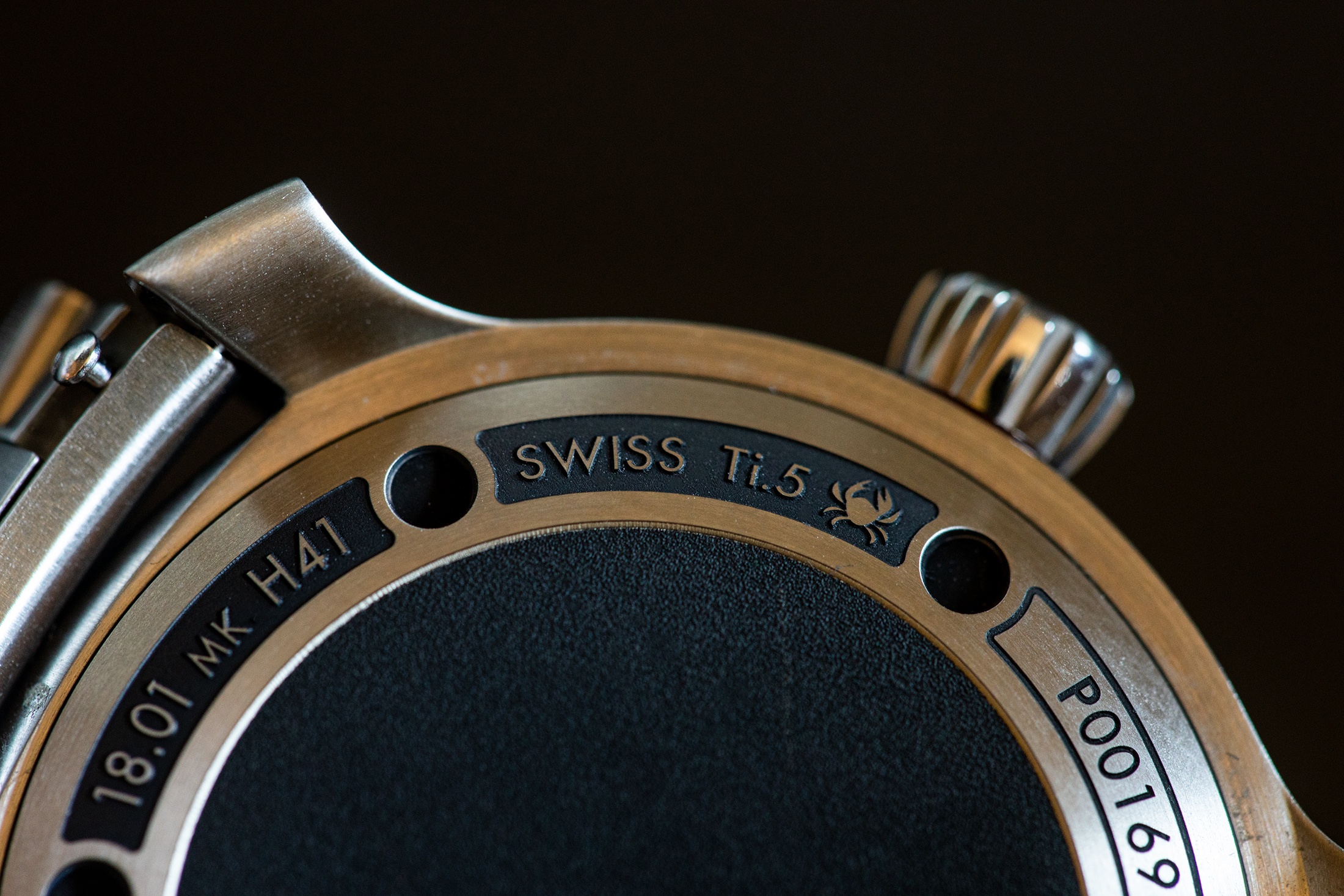 ミンの最初のダイバーズウォッチは、実際には10本のプロトタイプシリーズである「18.01 アビス コンセプト」だったが、ケース素材を除いて、製品版モデルである18.01 H41の基本的な要素をほぼ全て確立していた。アビス コンセプトでは、サテン仕上げの316Lステンレススティールケースを採用していたが、量産モデルでは、グレード5チタンまたはDLC(ダイヤモンドライクカーボン)処理SSのいずれかを選択可能だ。