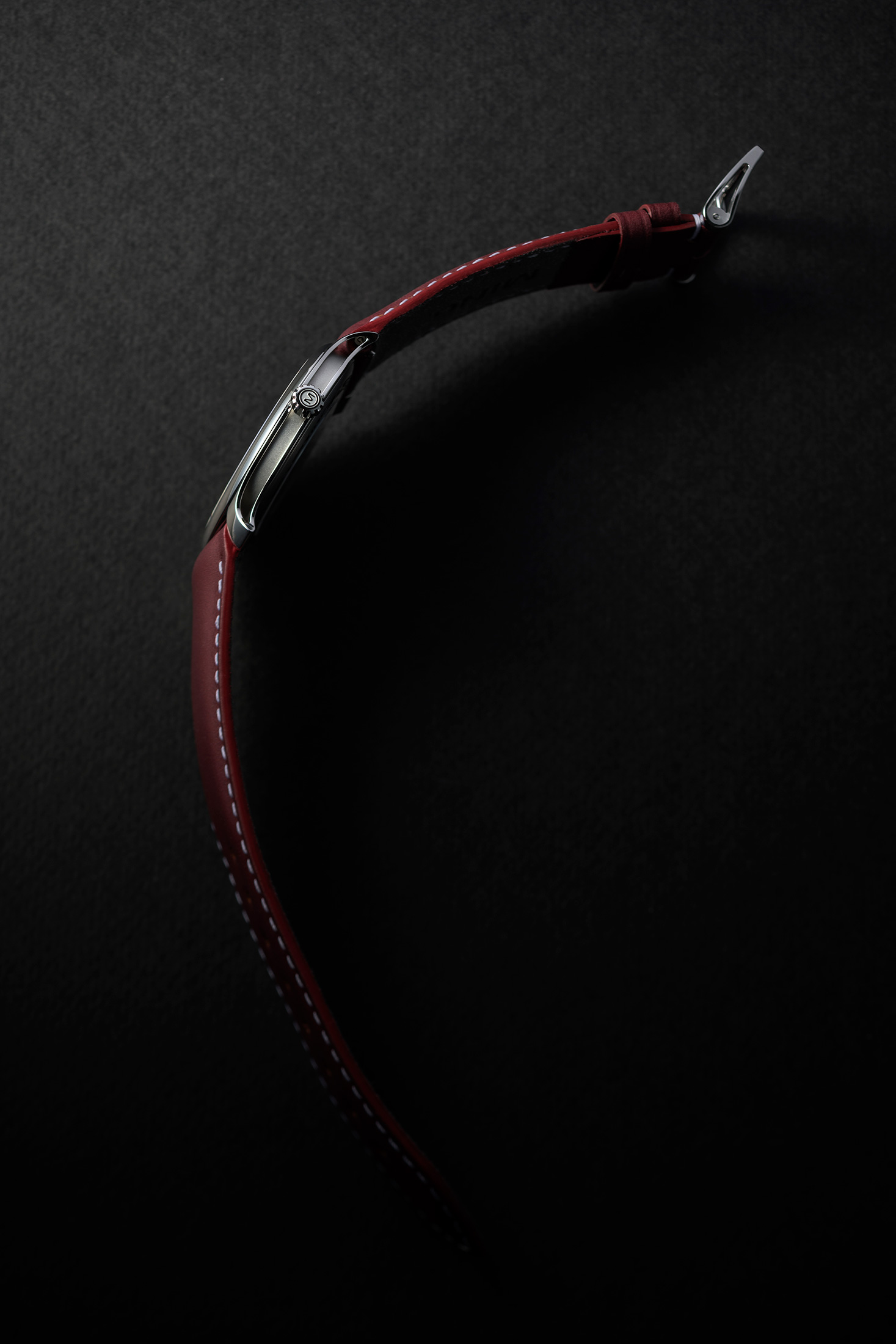ストラップは、今回もジャン・ルソー社が提供している。価格は3950スイスフラン(約44万円)で、初回は125本のみが生産される。納品時期は、9月中を予定。注目すべき点は、夜光が採用されていないことだ。これまでの同社の多くの時計には、スーパールミノバが採用されているが、従来のエクストラフラットやウルトラシンといった超薄型時計の多くに夜光が採用されていないためこの仕様になっているのである。しかし、文字盤には、インデックスのために切り抜かれたチャプターリングが採用されており、これまでのミン同様に文字盤の奥行きを感じることができる。