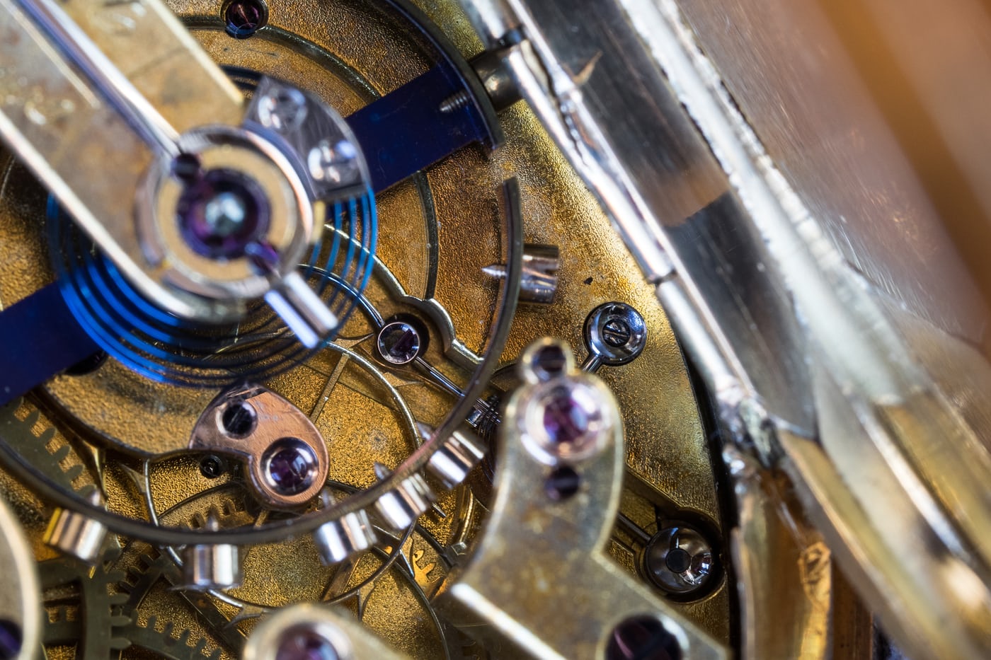 だが、ここで別の問題が発生する。振り子を押すと、その自然の振れに干渉してしまうのだ。そして、それが多少か、甚大かは、どれだけ強く押すかに左右される。振り子が均衡点ちょうどで推進力を与えることで、周期に影響を与えないようにするのが理想だ。しかし、実際には、物理的に振り子に推進力を与えることは、どのようにしても、エラーを生んでしまう。この問題は、時計を作る場合さらに深刻になる。振り子を振り続けなければならないだけでなく、機械的かつ精確に揺らさなければいけなくなる。つまり、振り子に推進力を与えると共に、輪列を規則正しく動かすための機構が必要となるが、このような機構は実在している。それがエスケープメントと呼ばれるものなのだ。